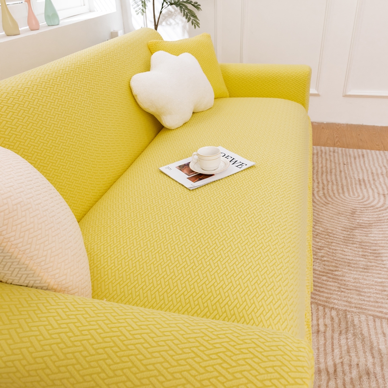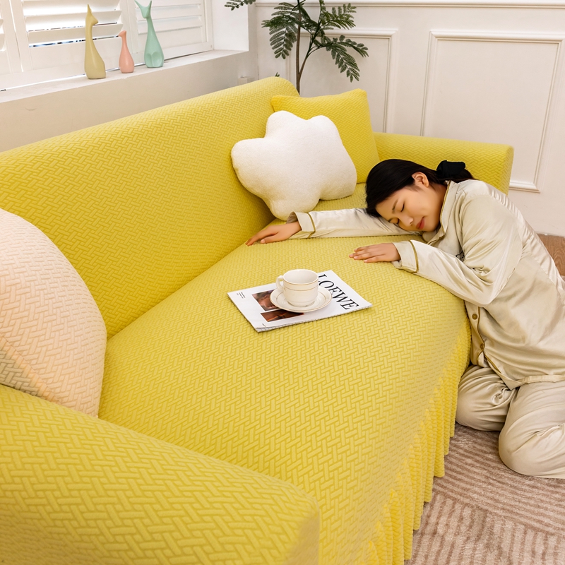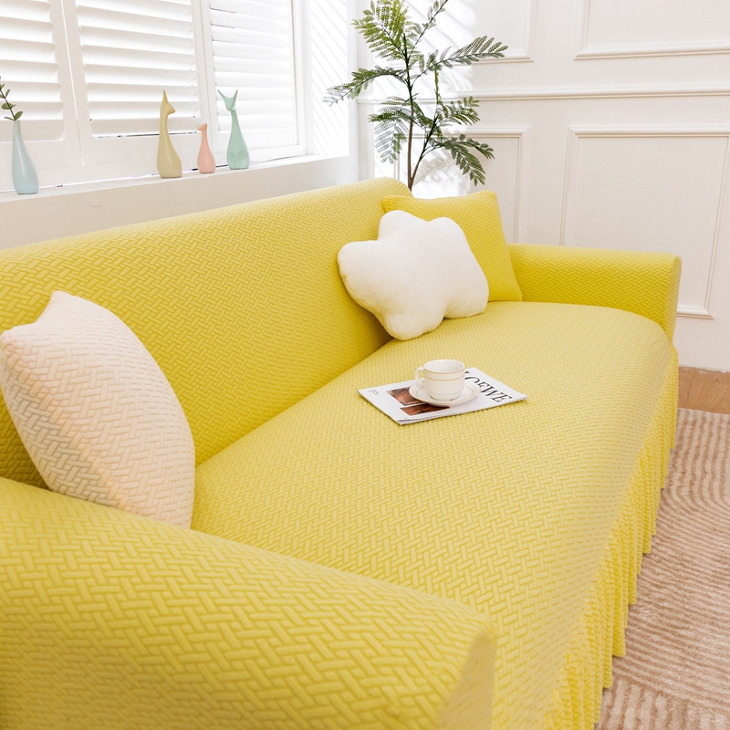 沐沐家纺 2026新款摇粒绒裙边沙发套 柠檬黄