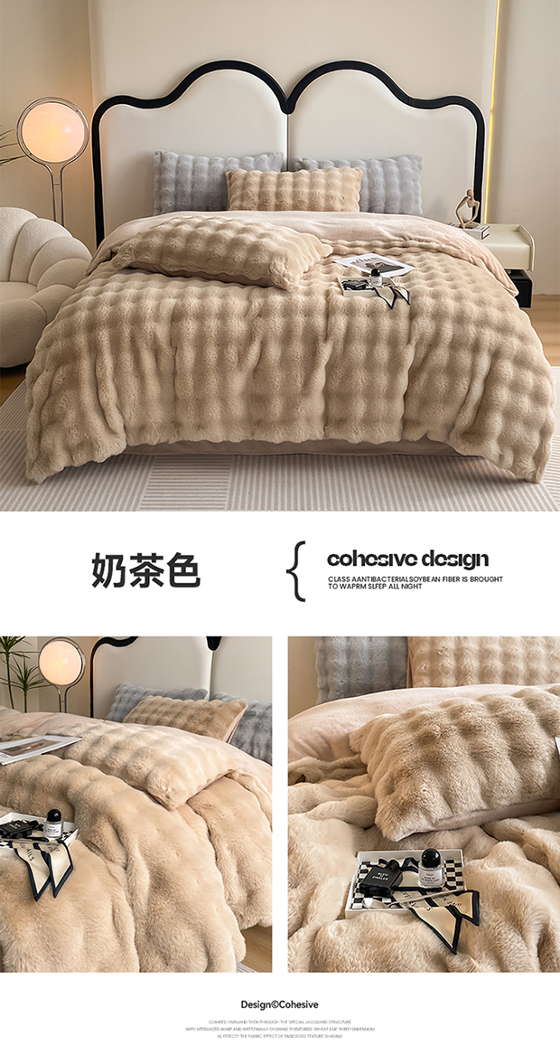 商品名称:凉百百 2024新款保暖大泡泡兔毛绒四件套 奶茶色