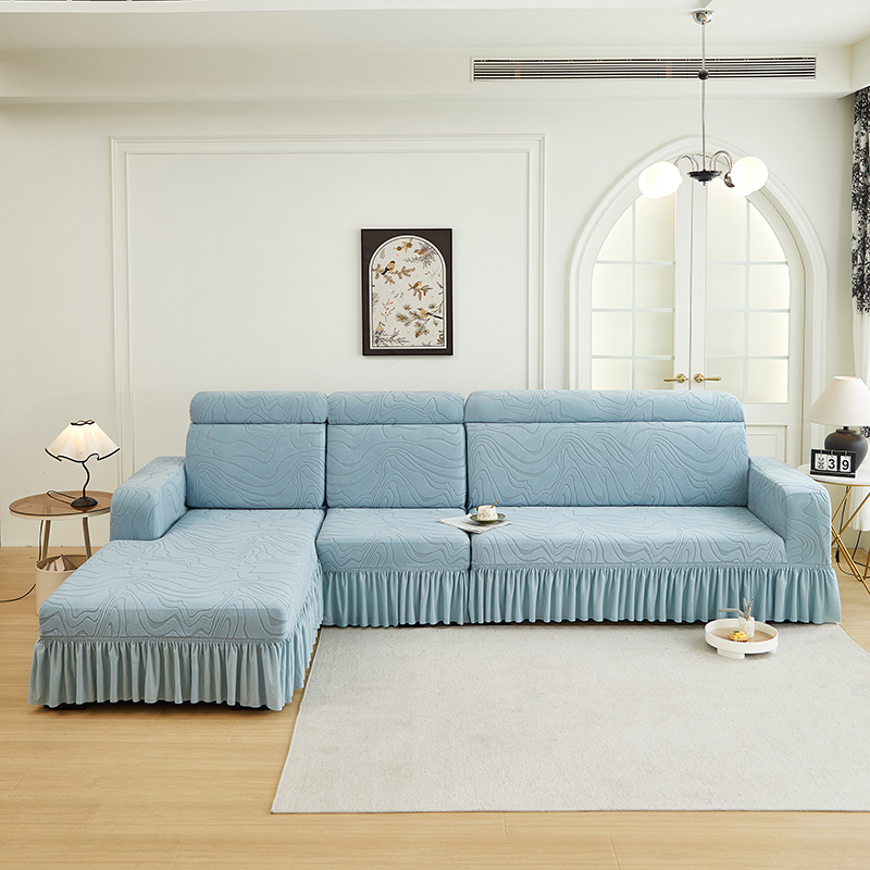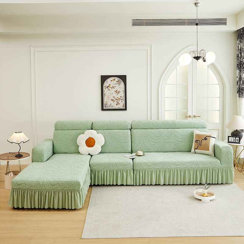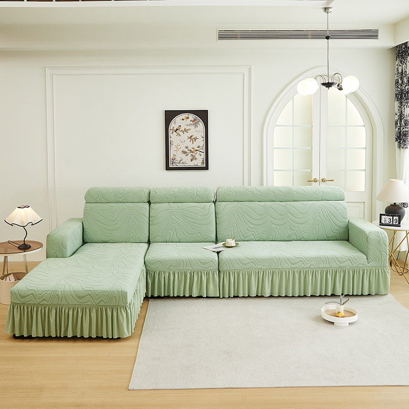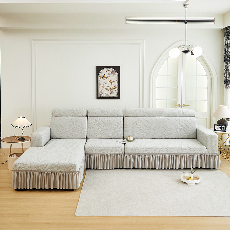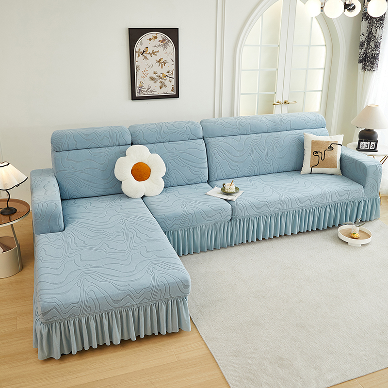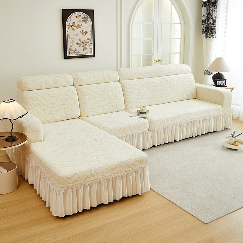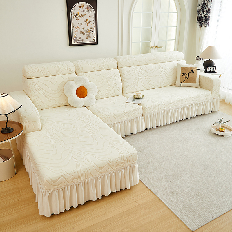 当前位置: 91家纺网 > 商品网购 > 居家布艺 > 坐垫/椅垫/沙发垫 > 沙发垫 > 丝绮鹿 2024新款雕花绒曲意系列沙发套裙边款(贵妃图) 米白