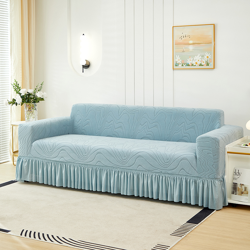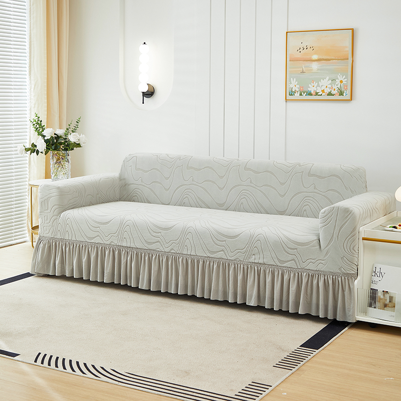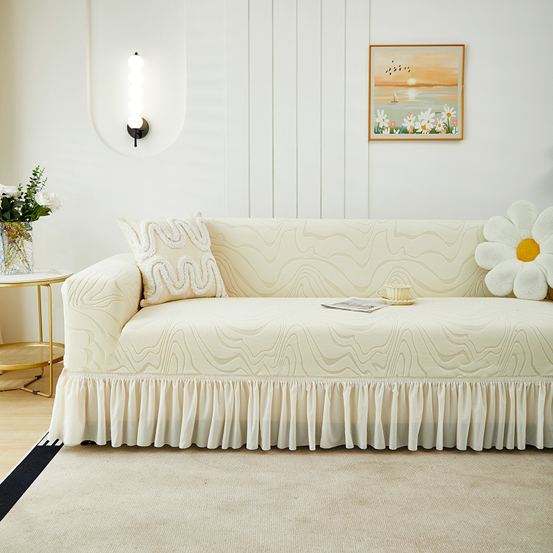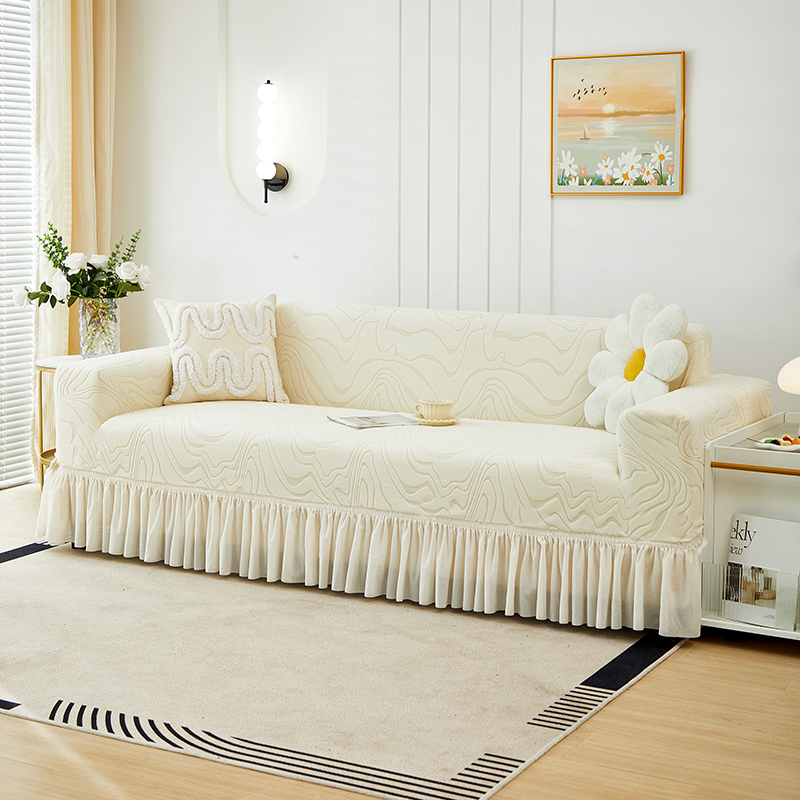当前位置: 91家纺网 > 商品网购 > 居家布艺 > 坐垫/椅垫/沙发垫 > 沙发垫 > 丝绮鹿 2024新款雕花绒曲意系列沙发套裙边款(三人图) 米白