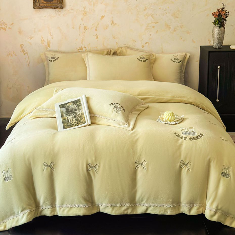 • 91家纺网 家纺一手货源 找家纺 未来家居 2024新款全活性高克重牛奶绒四件套 甜心-果绿