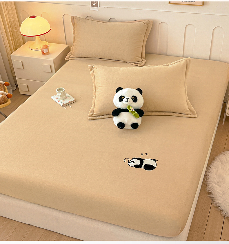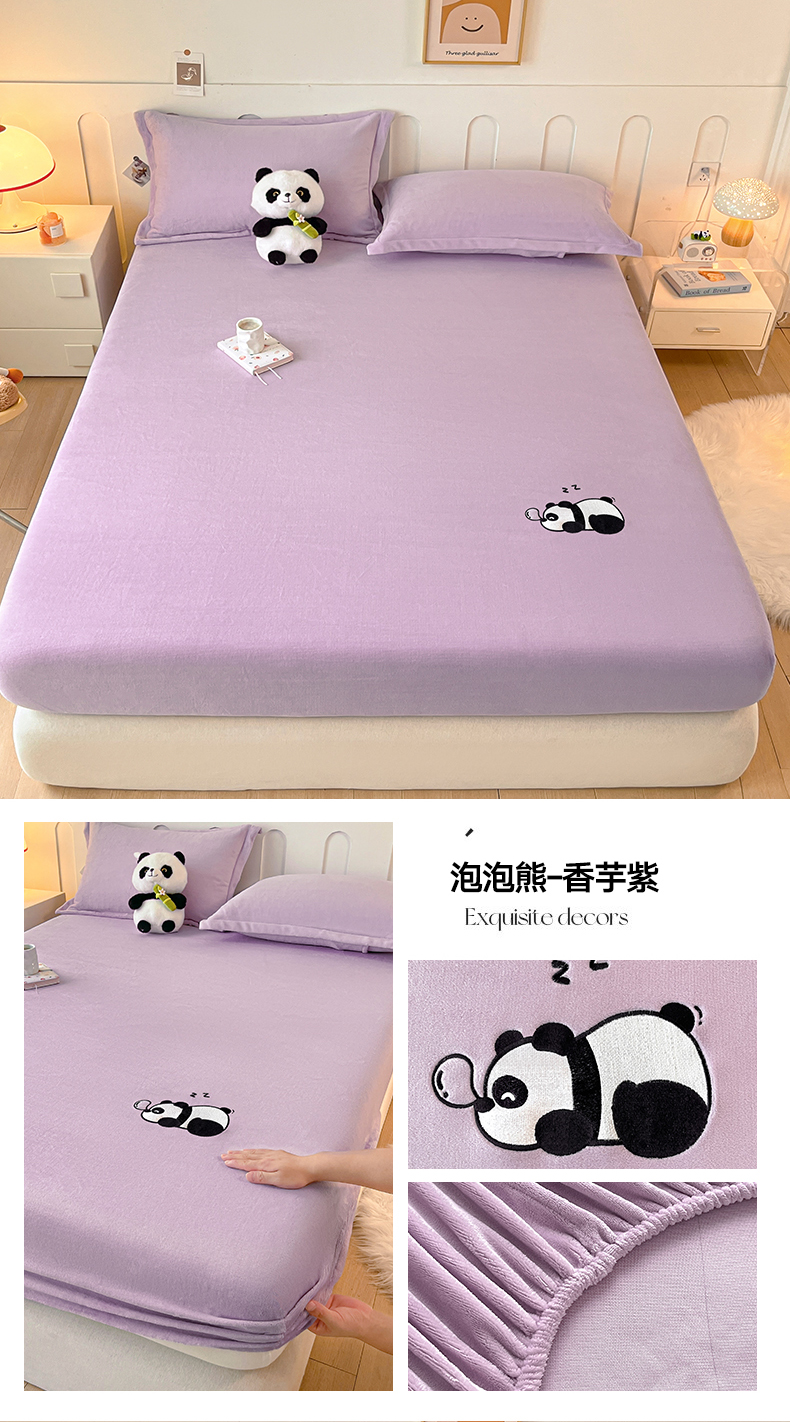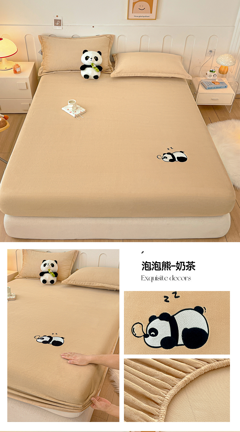 商品名称:梵克保罗 2024新款秋冬新款保暖加厚纯色牛奶绒泡泡熊刺绣单品单床笠 泡泡熊-墨子绿