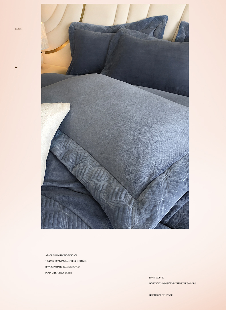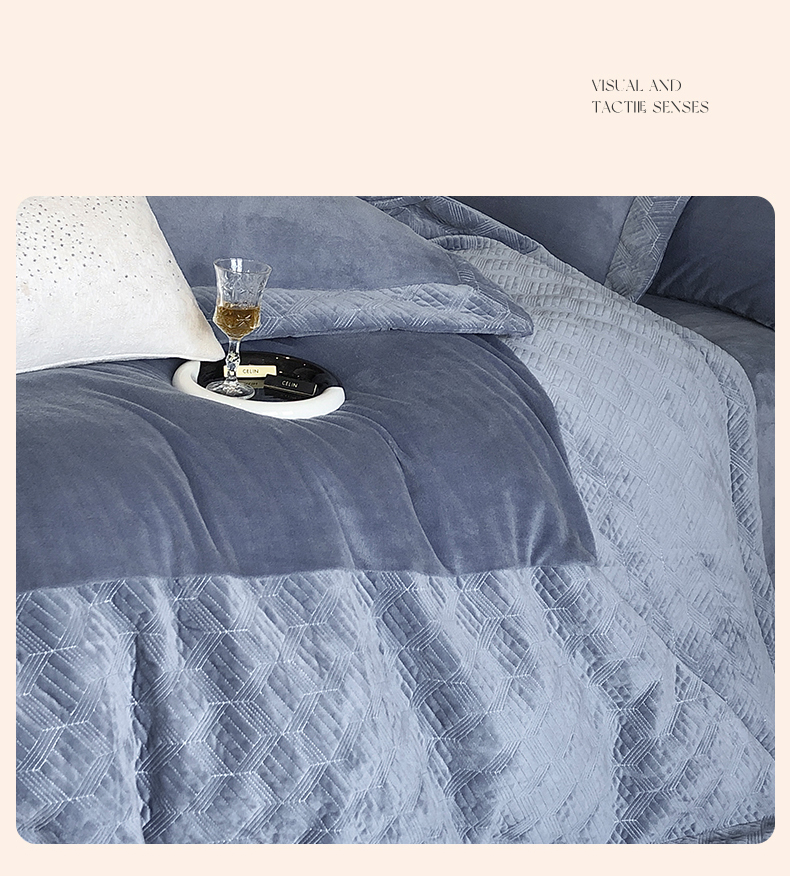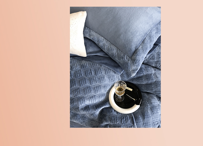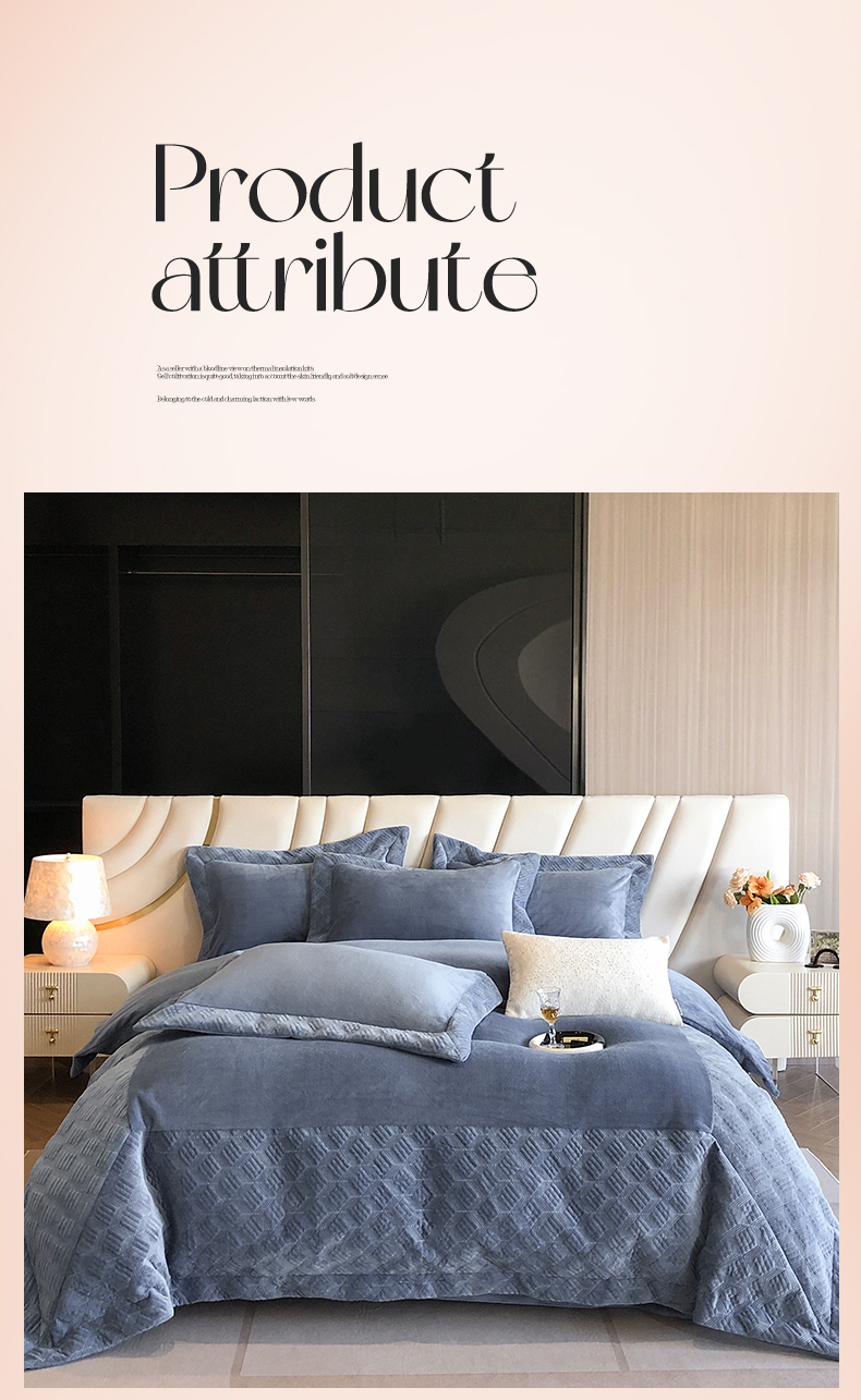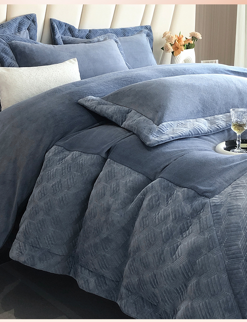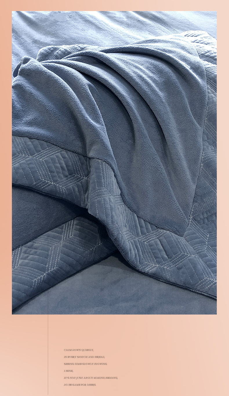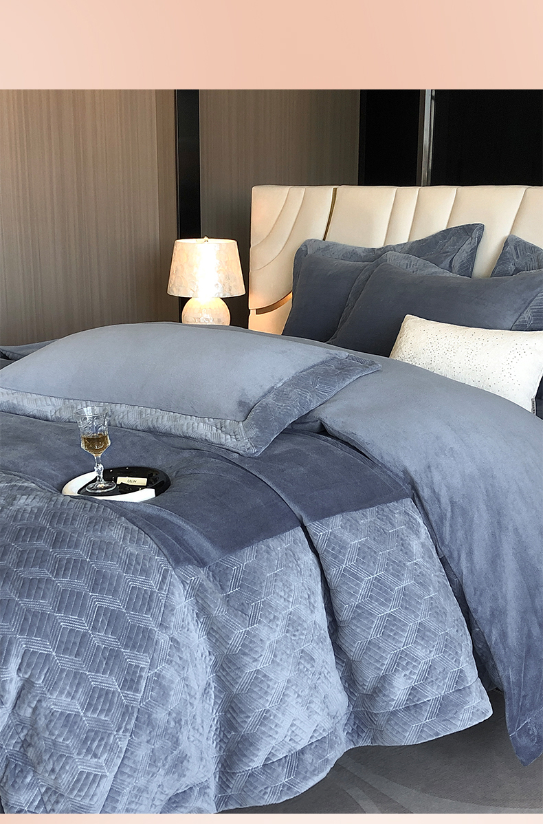 商品名称:保罗圣迪奥 2024新款绗绣大拼角牛奶绒四件套-伯格曼 伯格曼-海洋蓝