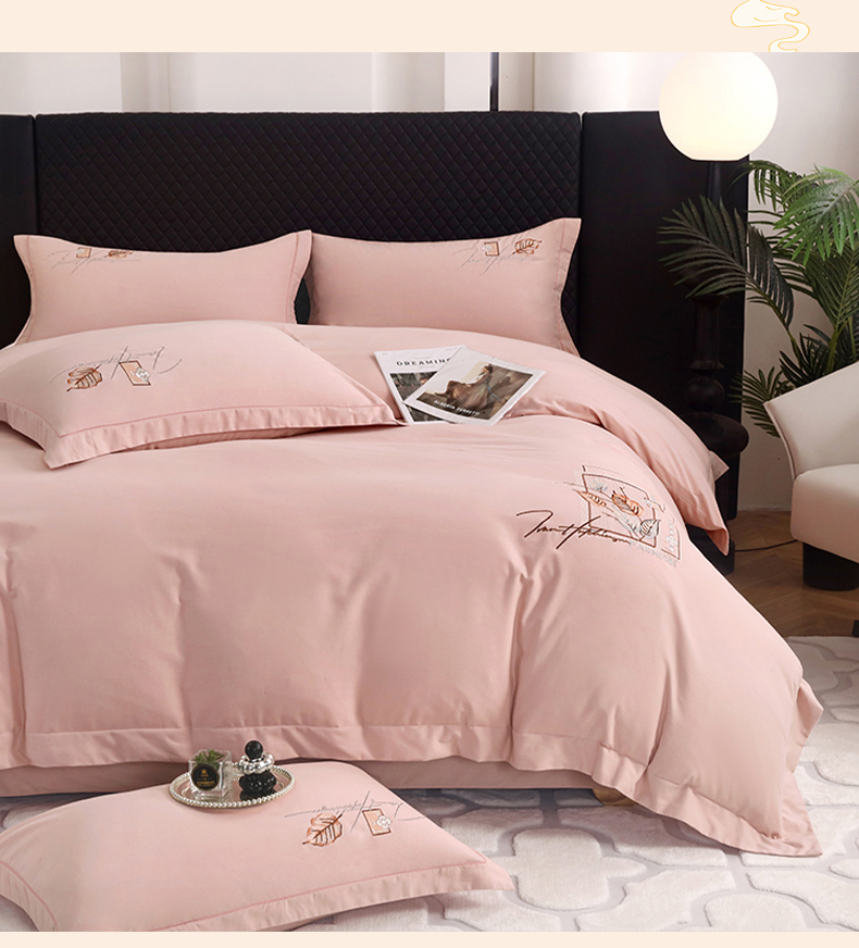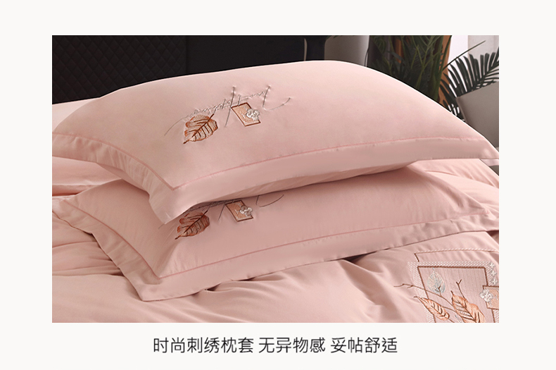 商品名称:金纱玉纺家纺 2024新款百分之百全棉新款轻奢刺绣四件套 叶香风暖-粉玉