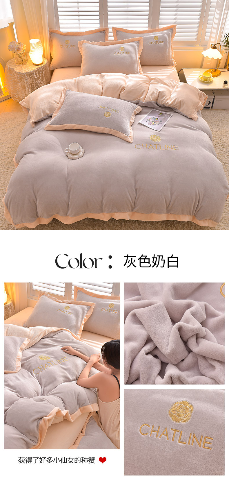 当前位置: 91家纺网 > 商品网购 > 床品套件 > 四件套 > 牛奶绒四件套 > 简爱 2025新款牛奶绒纯色双拼拼角工艺款四件套-初暖 灰色奶白