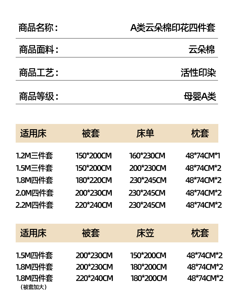 1.8m床笠款四件套(被套200*230cm) | ¥52.00 |