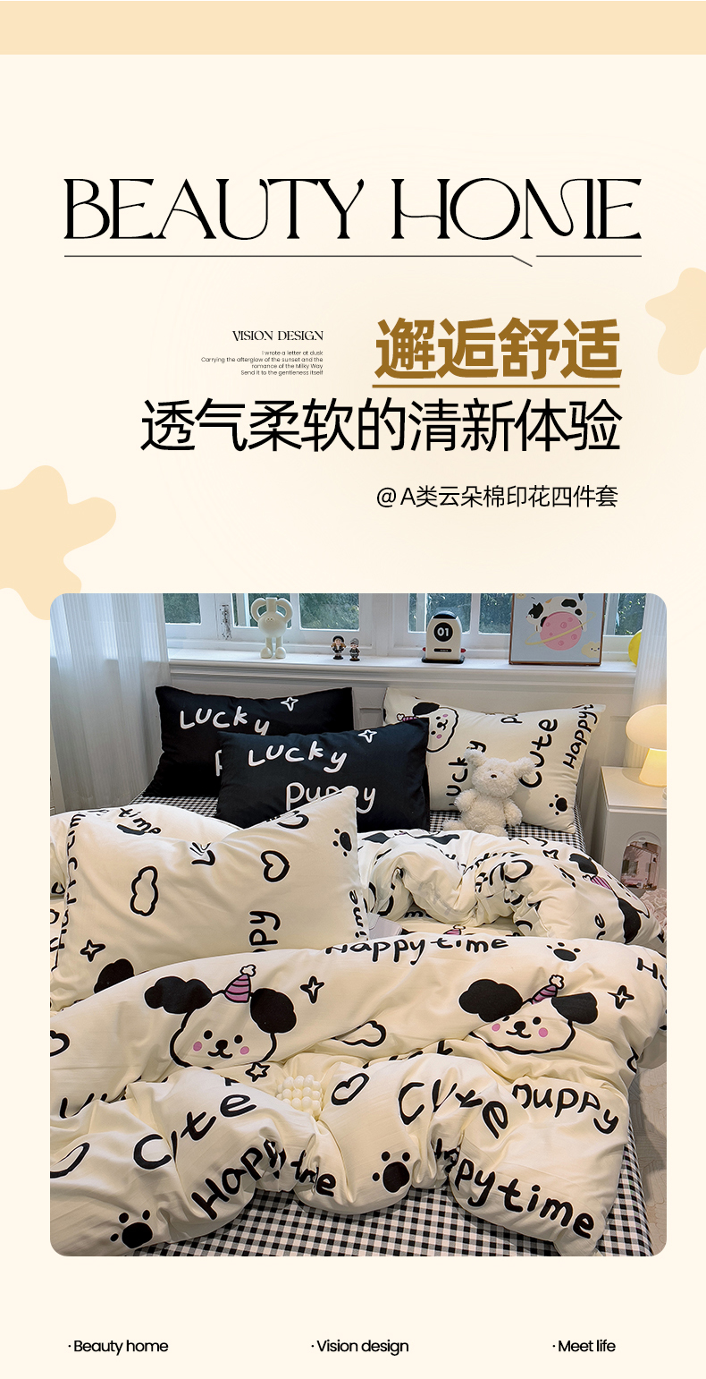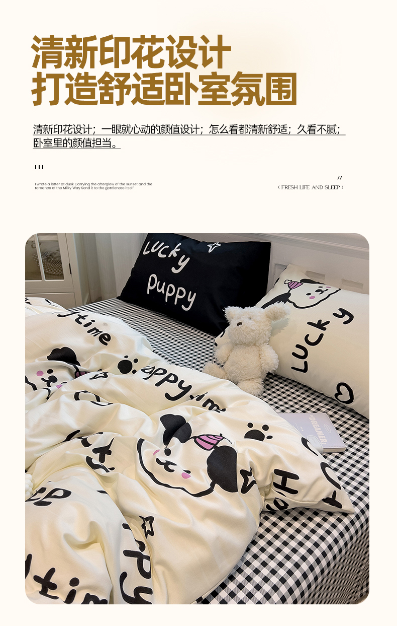 当前位置: 91家纺网 > 商品网购 > 床品套件 > 四件套 > 水洗棉四件套 > 妖妖家纺 2025新款水洗云朵糯糯棉大版枕套四件套 幸运狗狗