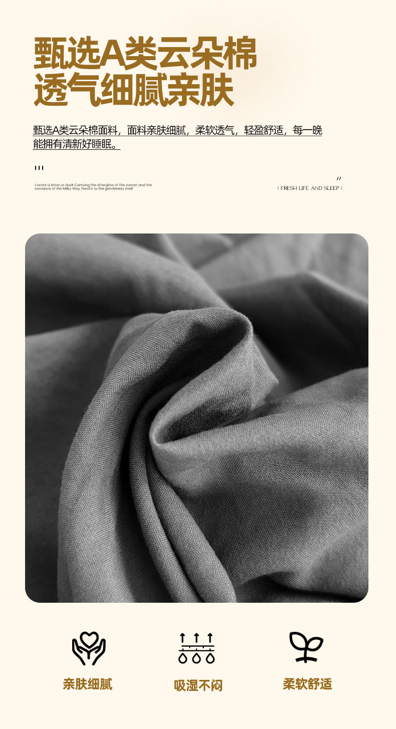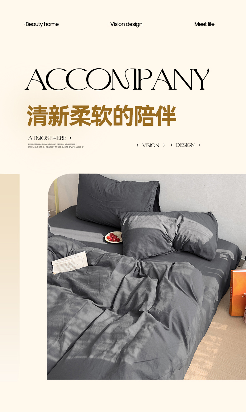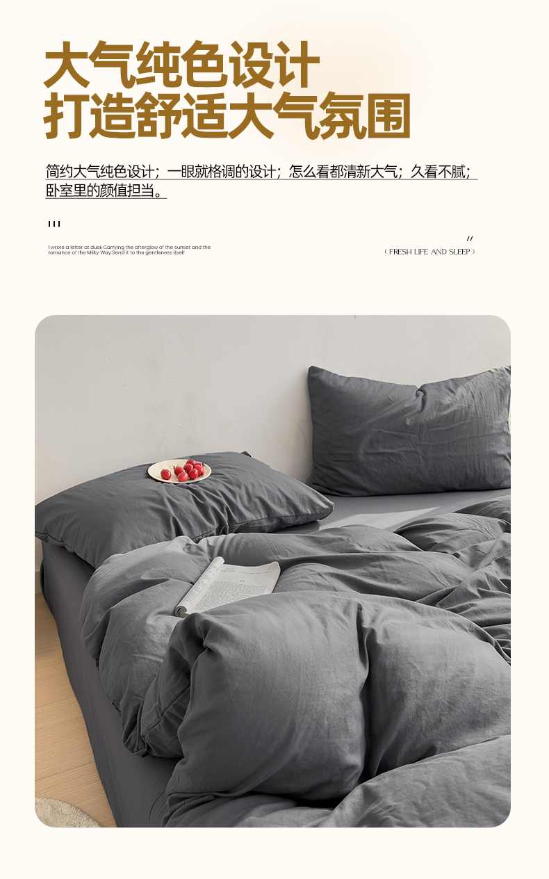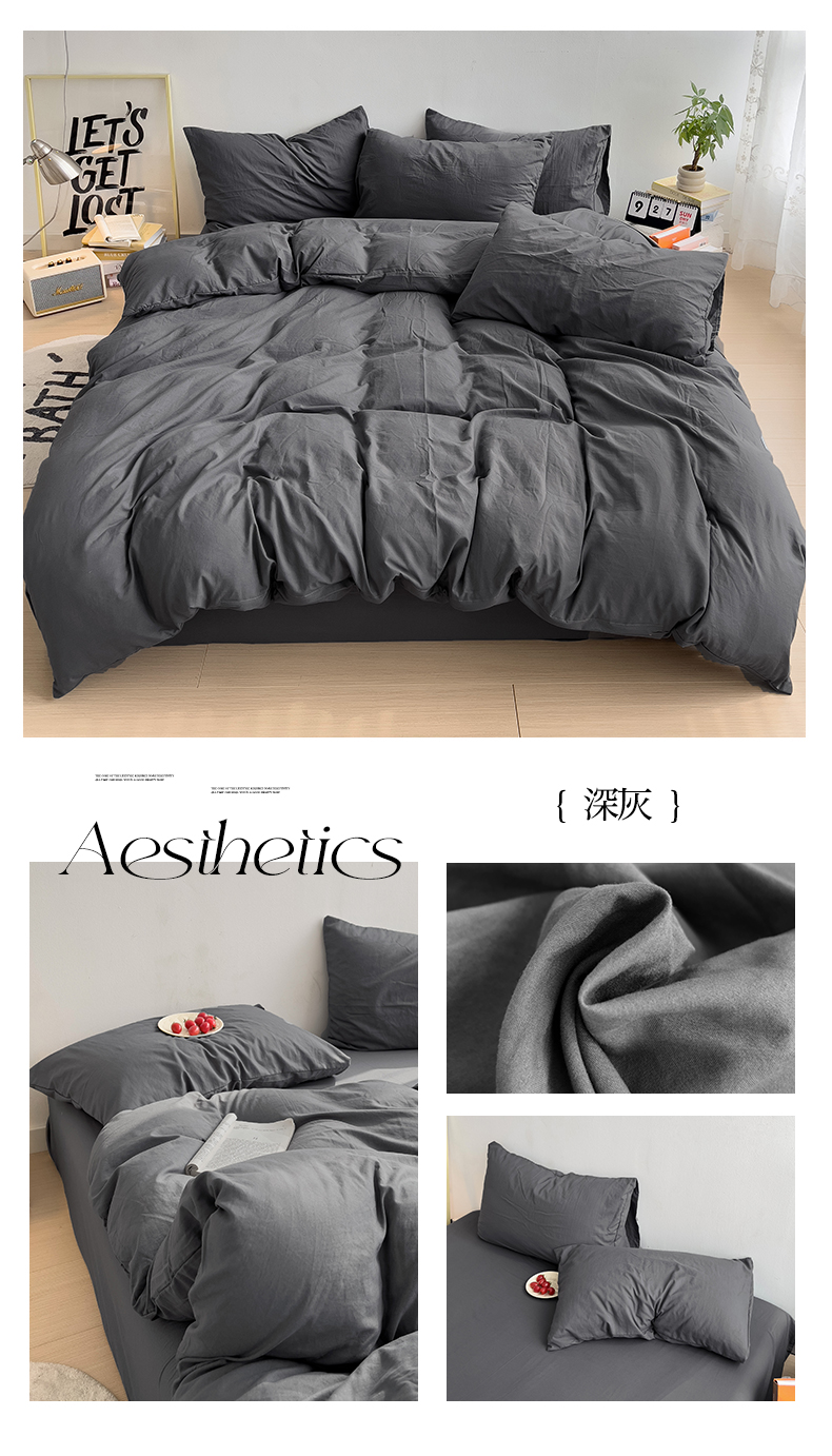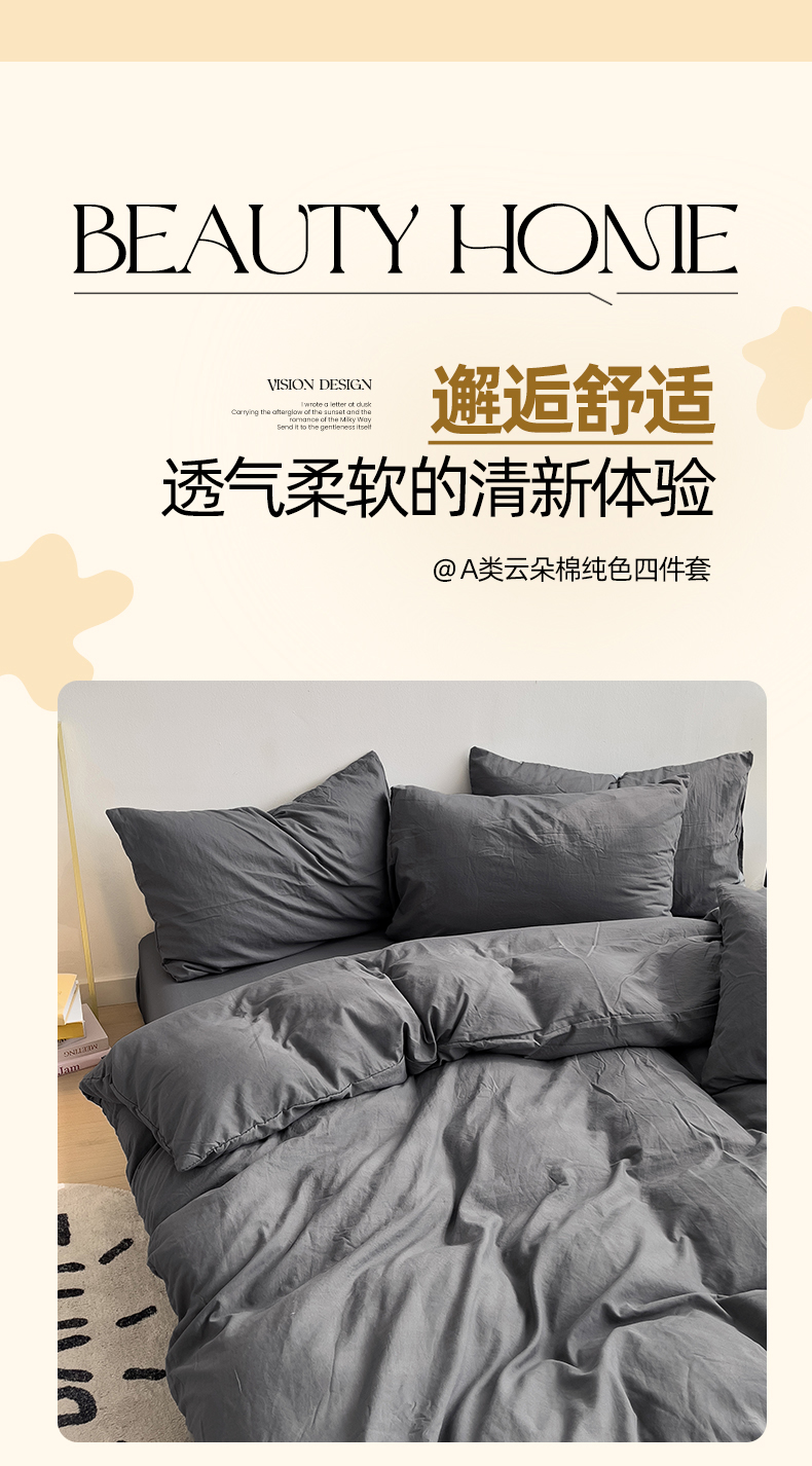 当前位置: 91家纺网 > 商品网购 > 床品套件 > 四件套 > 水洗棉四件套 > 妖妖家纺 2025新款水洗云朵棉纯色四件套 深灰