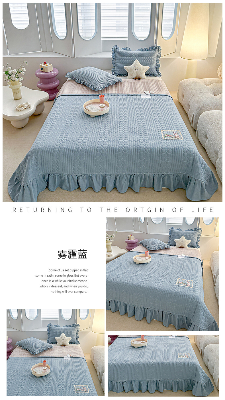 商品名称:源舜家纺 2025新款云感皱皱纱韩版纯色床盖三件套 雾霾蓝