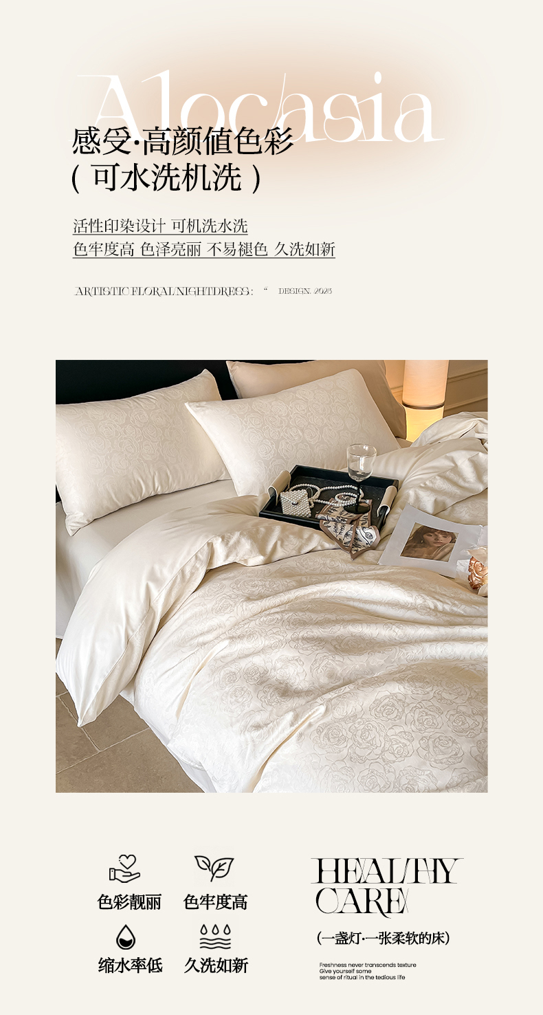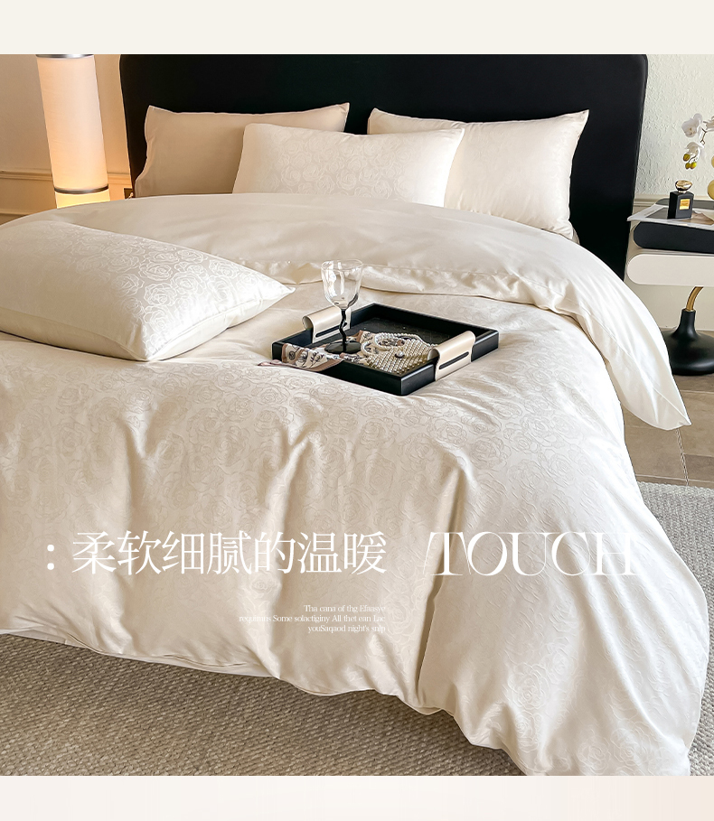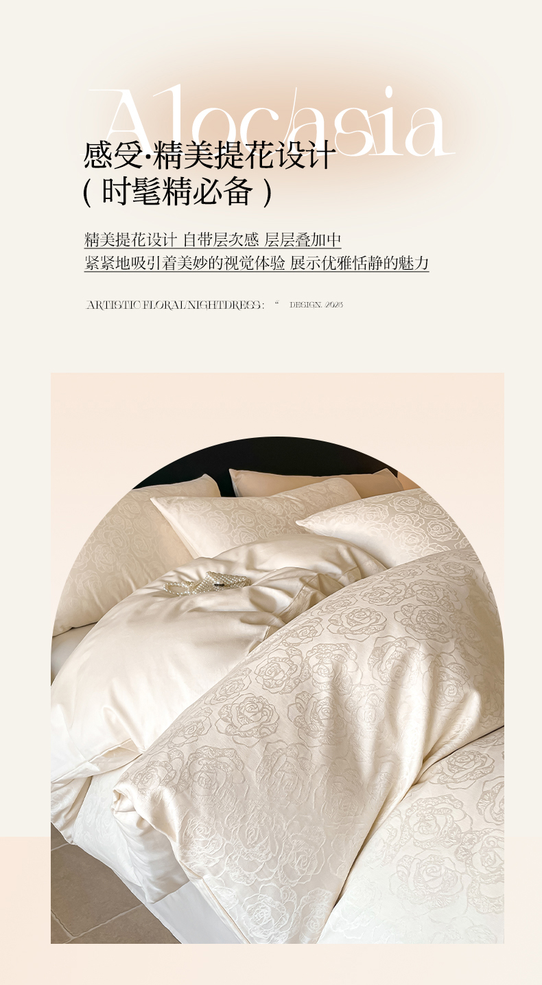 三朵家纺 2024新款全棉贡缎大提花四件套系列 玫瑰园白