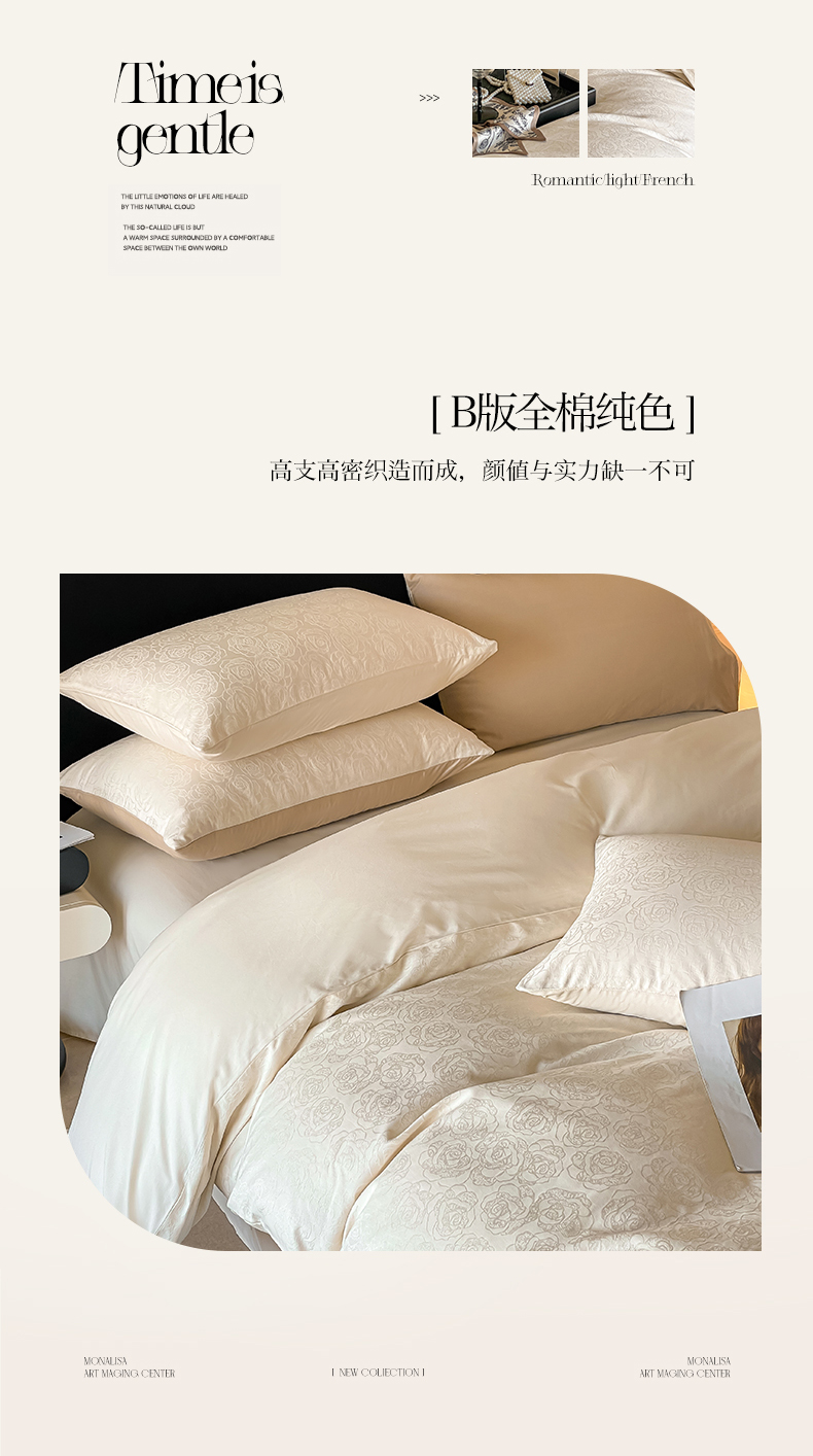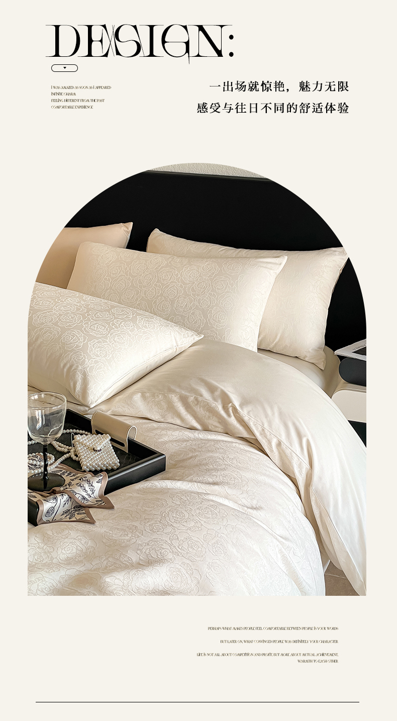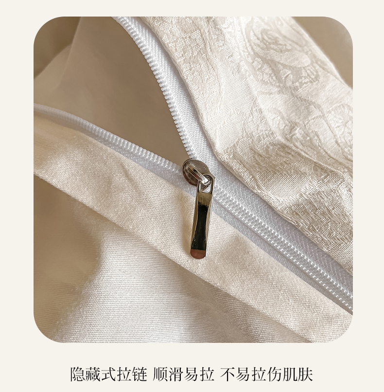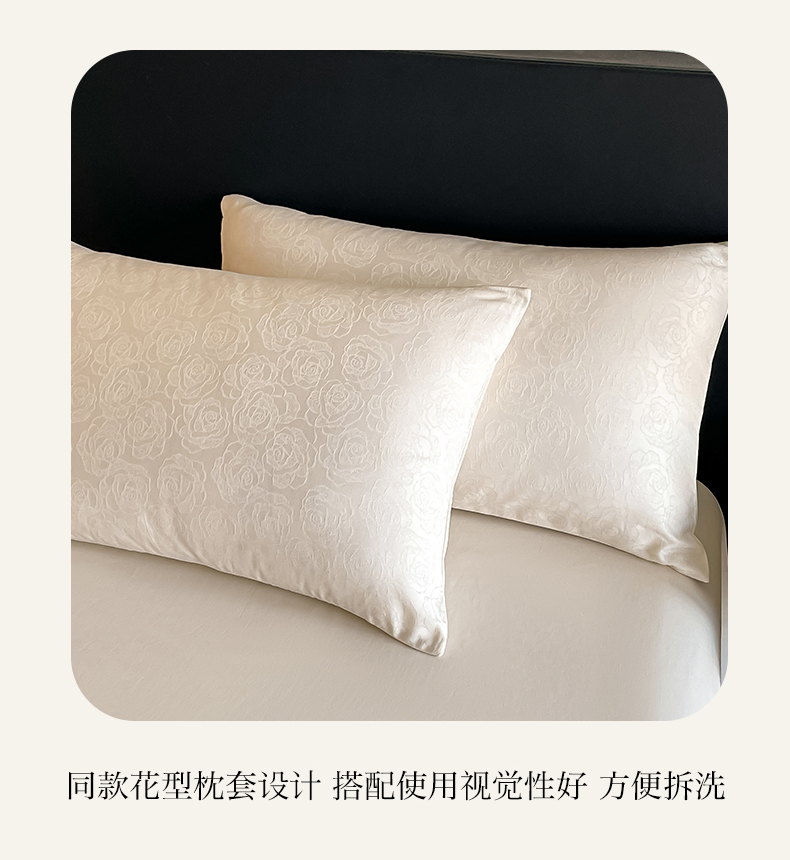 商品名称:三朵家纺 2024新款全棉贡缎大提花四件套系列 玫瑰园白