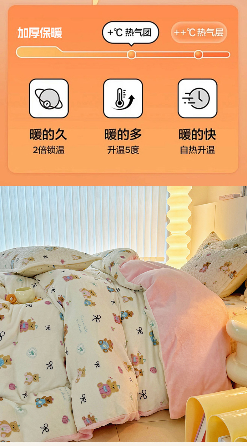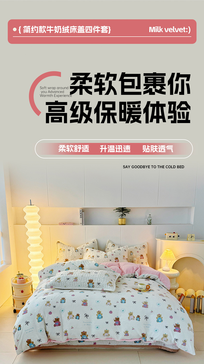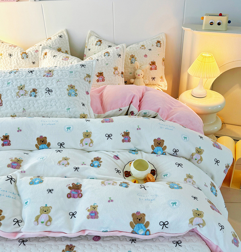添越家纺 2025新款简约款牛奶绒床盖四件套 小熊宝宝