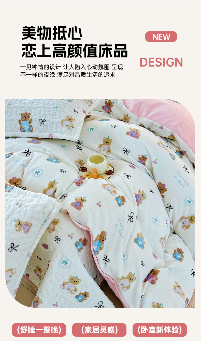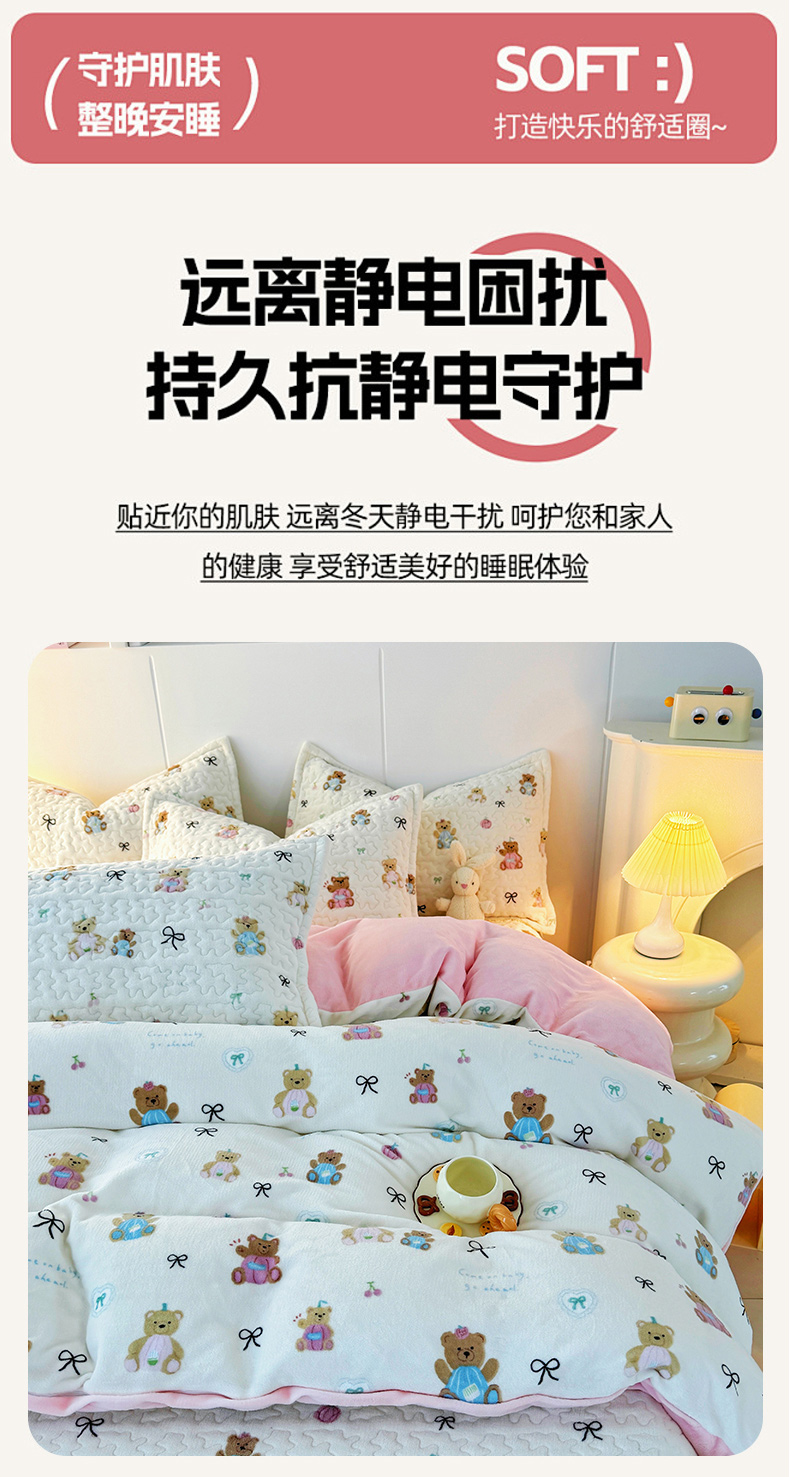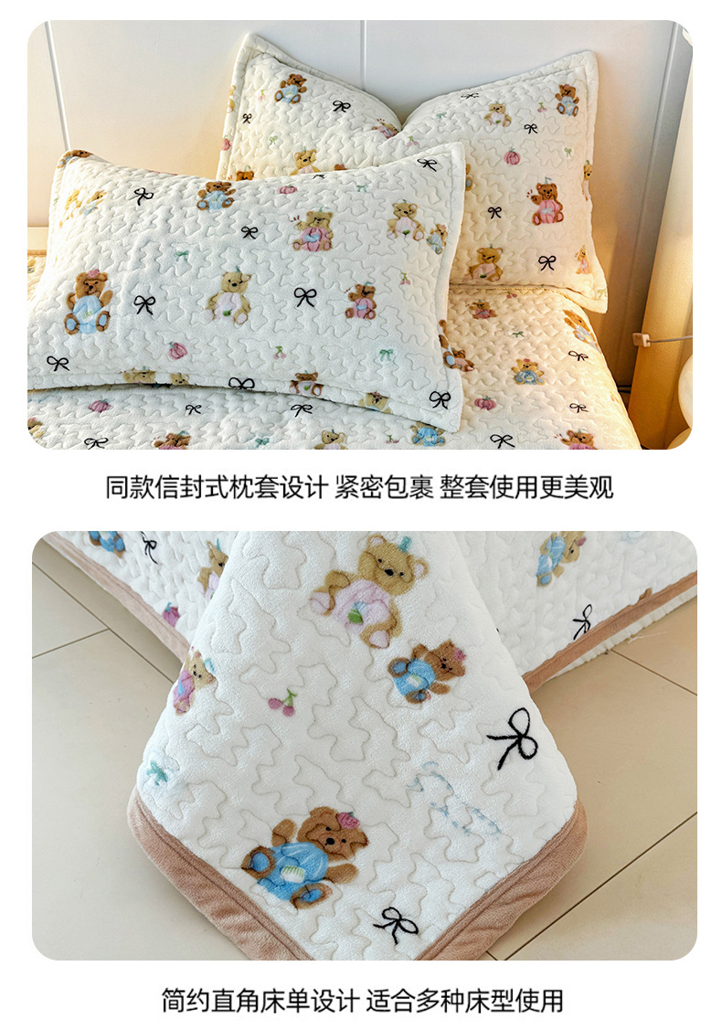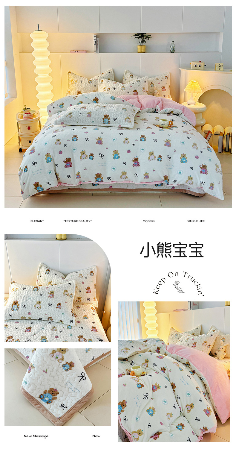 商品名称:添越家纺 2025新款简约款牛奶绒床盖四件套 小熊宝宝