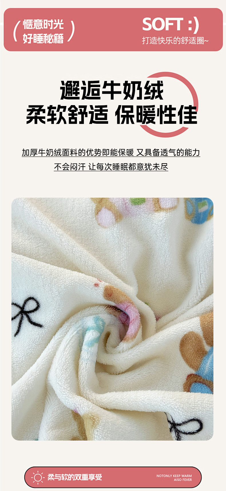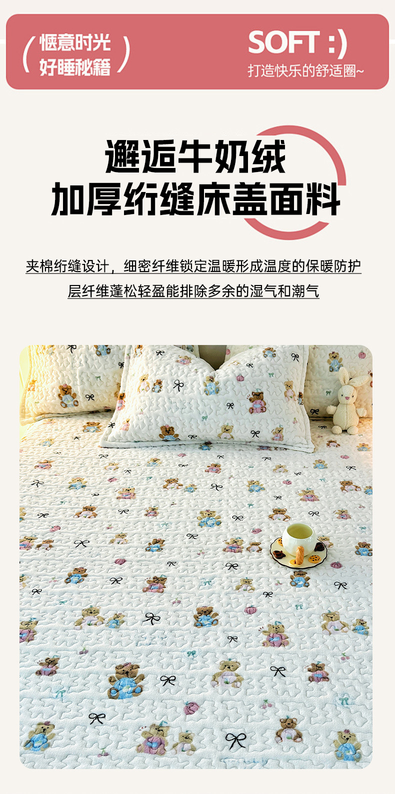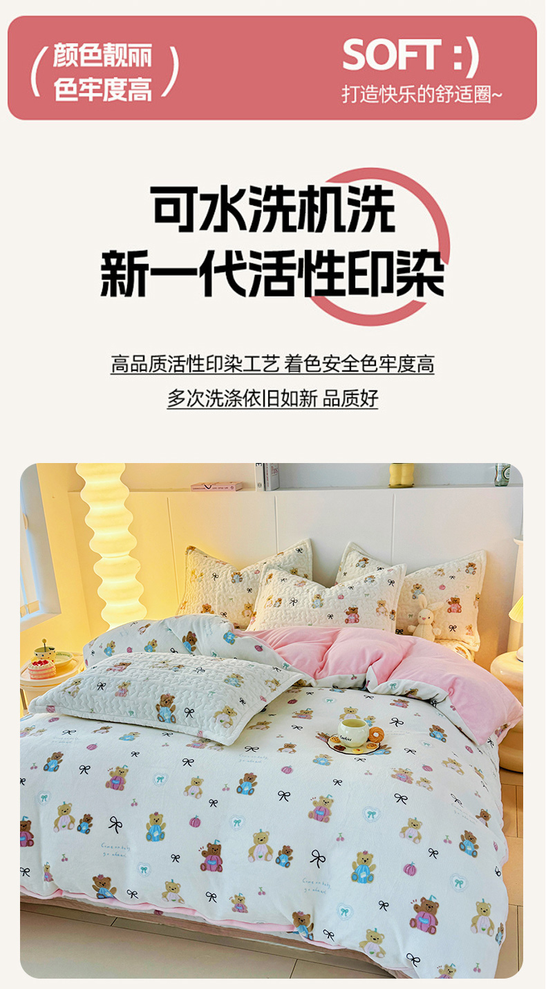 商品名称:添越家纺 2025新款简约款牛奶绒床盖四件套 小熊宝宝