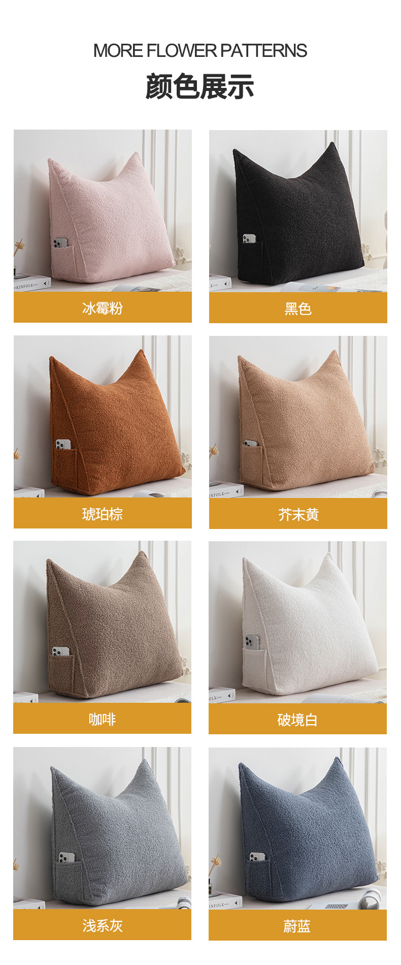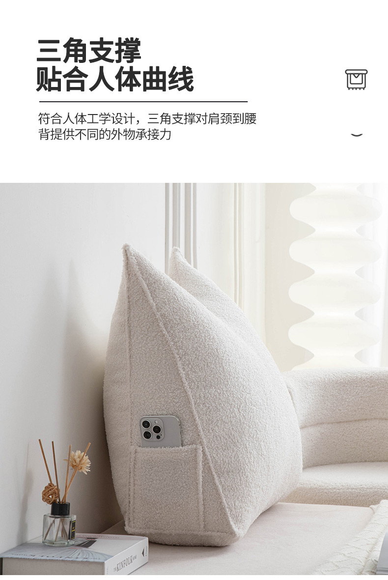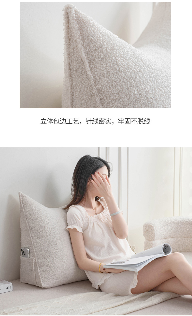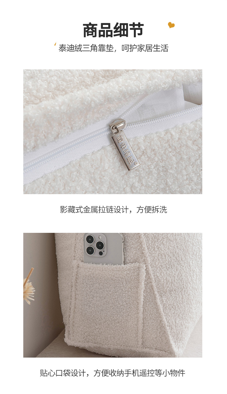(总)一兰家纺 2024新款泰迪绒三角靠垫床头大靠背腰靠沙发靠背可拆洗-楠妮系列,楠妮-冰霉粉,楠妮-琥珀棕,楠妮-芥末黄,楠妮-咖啡,楠妮-破境白,楠妮-浅系灰,楠妮-蔚蓝