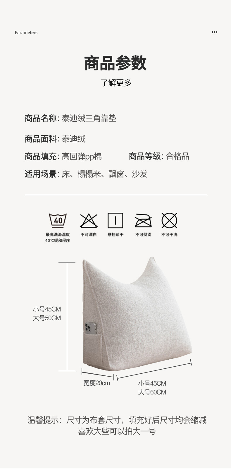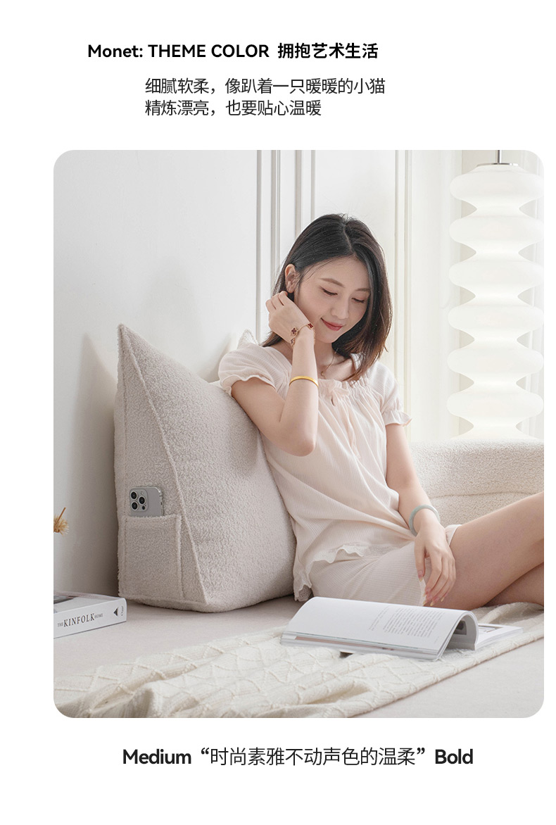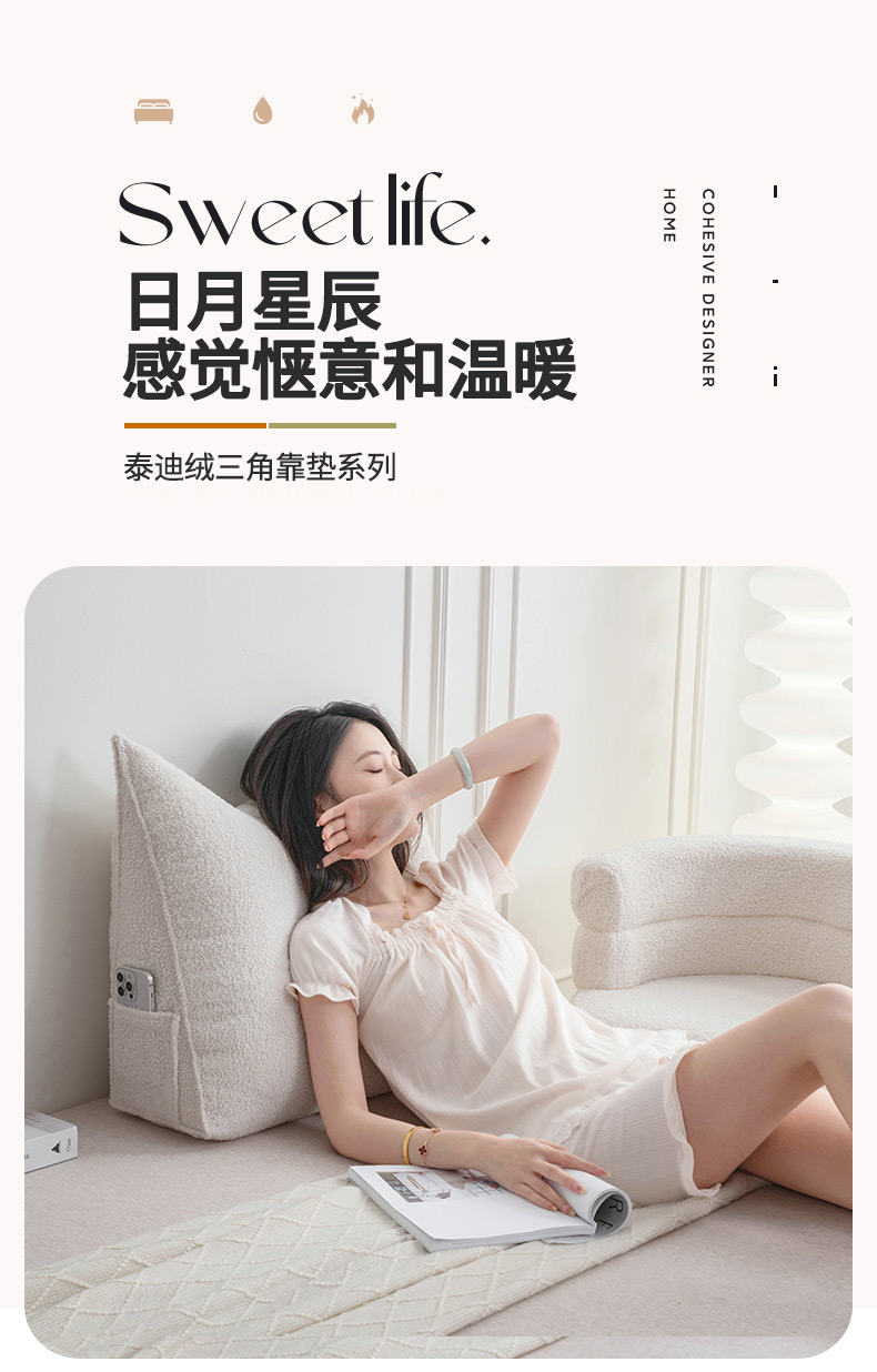 (总)一兰家纺 2024新款泰迪绒三角靠垫床头大靠背腰靠沙发靠背可拆洗-楠妮系列,楠妮-冰霉粉,楠妮-琥珀棕,楠妮-芥末黄,楠妮-咖啡,楠妮-破境白,楠妮-浅系灰,楠妮-蔚蓝