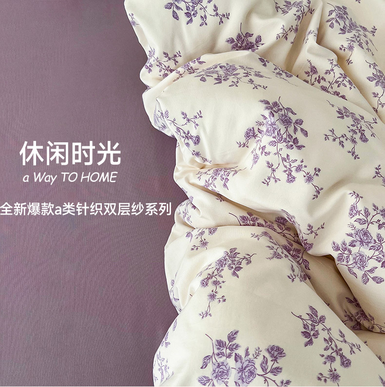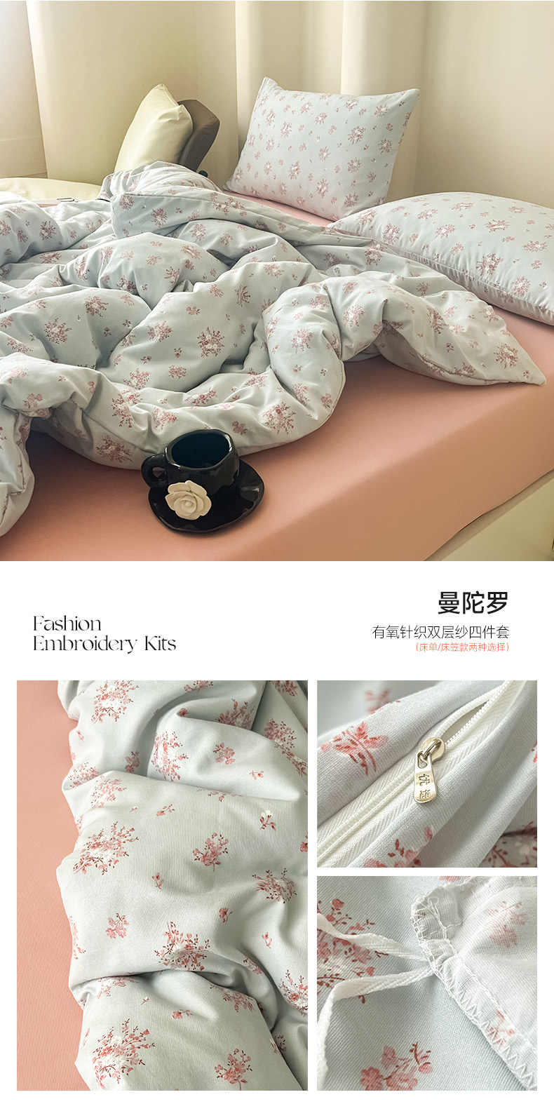 (总)优选良品 2025新款加厚针织棉双层纱四件套小碎花被套床单床笠款学生三件套新款直播热款-床图-系列二【提供买家秀】