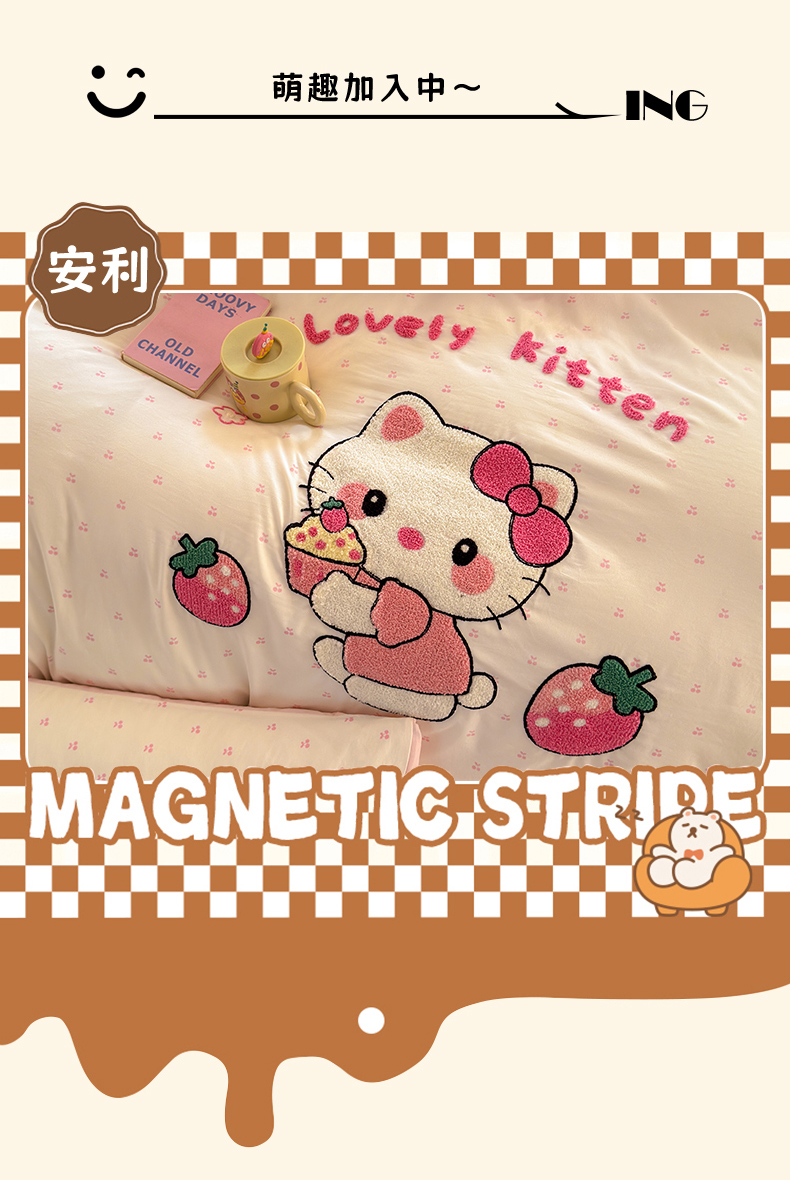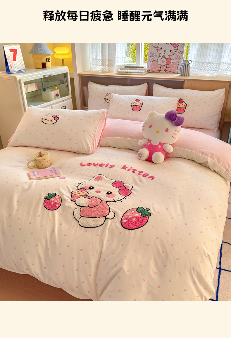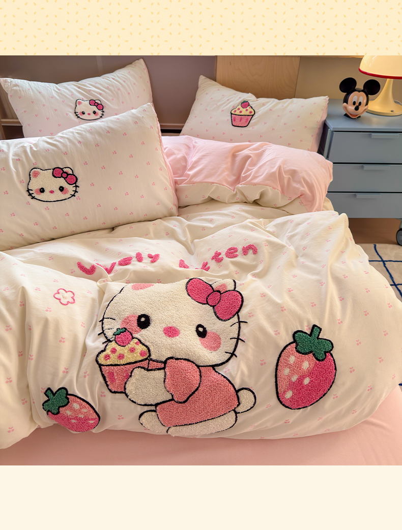 当前位置: 91家纺网 > 商品网购 > 床品套件 > 四件套 > 其它四件套 > 罗亿家纺 2025新款糯糯棉(110克)大版卡通毛巾绣四件套(提供买家绣) kt-莓烦恼