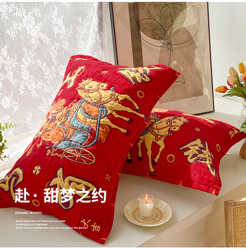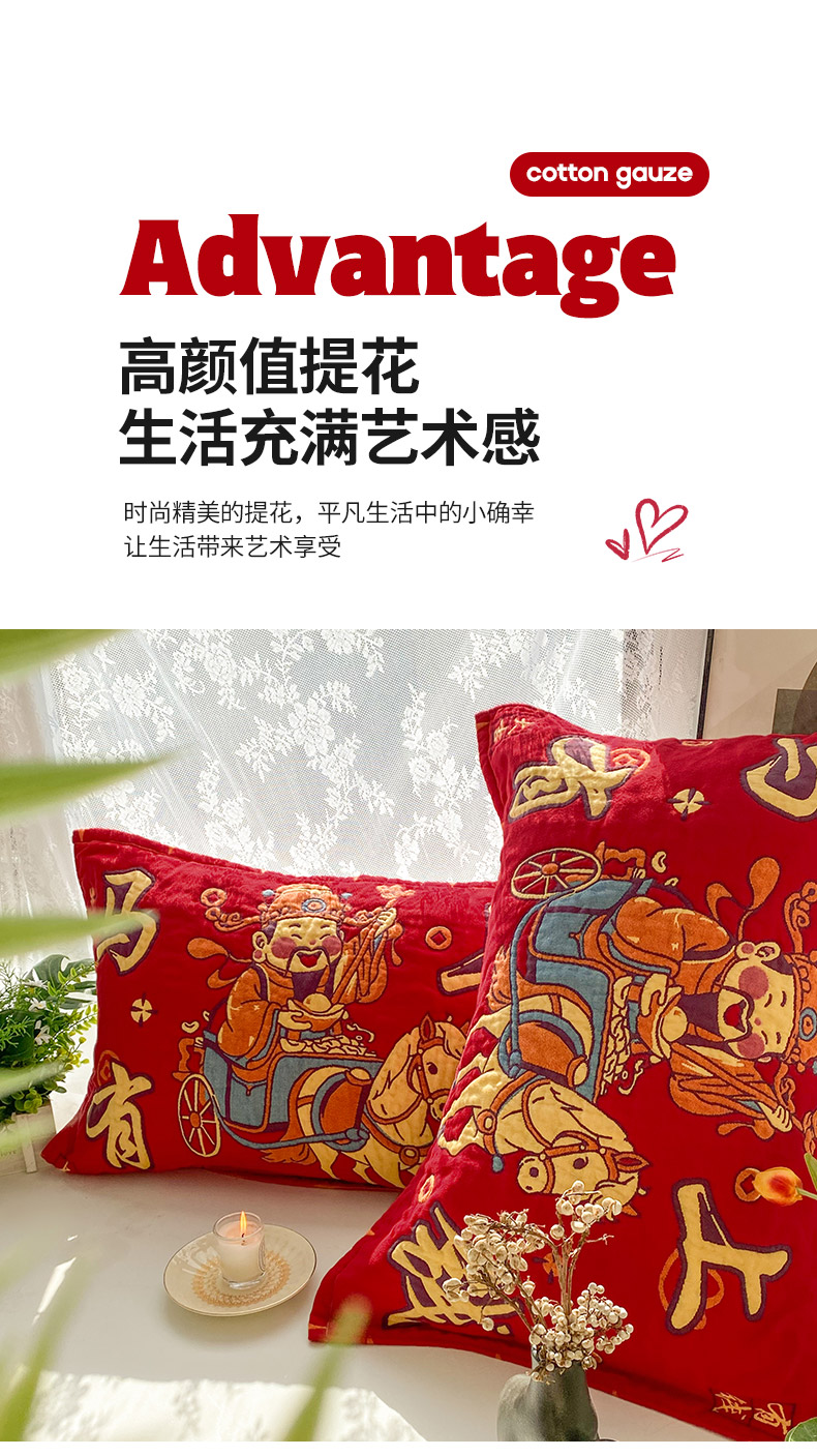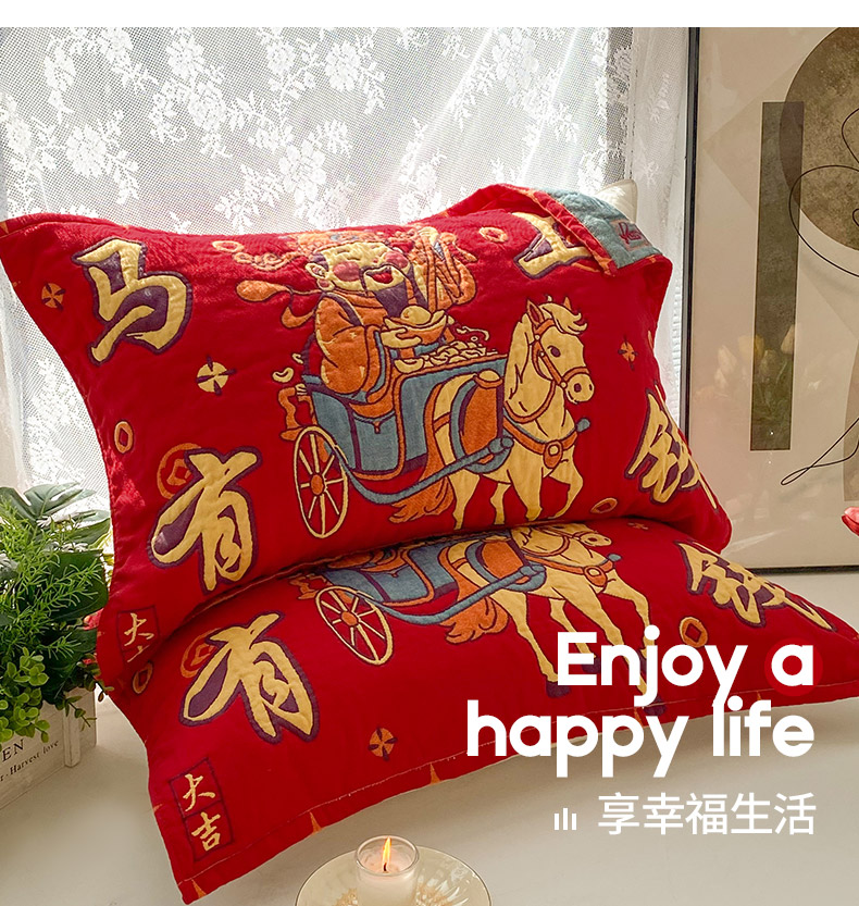 (总)美宜家 2025新款四层全棉纱布婚庆枕巾枕套枕头,百年好合,吉祥如意,喜上眉梢,喜气洋洋,喜结良缘,喜结连理,心心相印,欢欢喜喜,浪漫爱情,双喜临门,真爱永恒,花好月圆