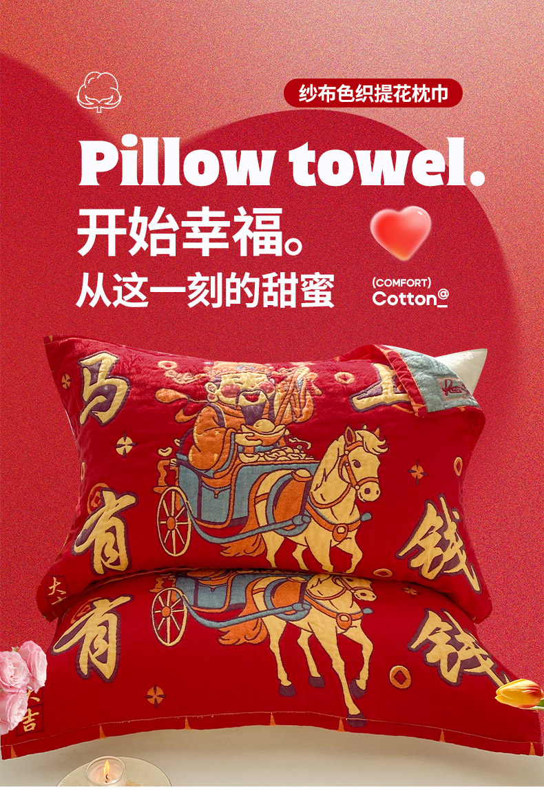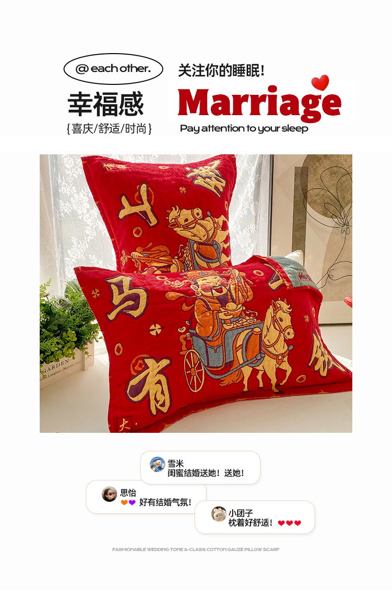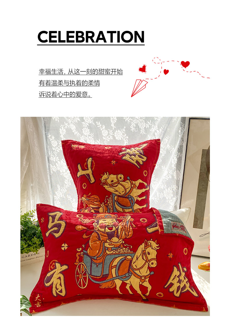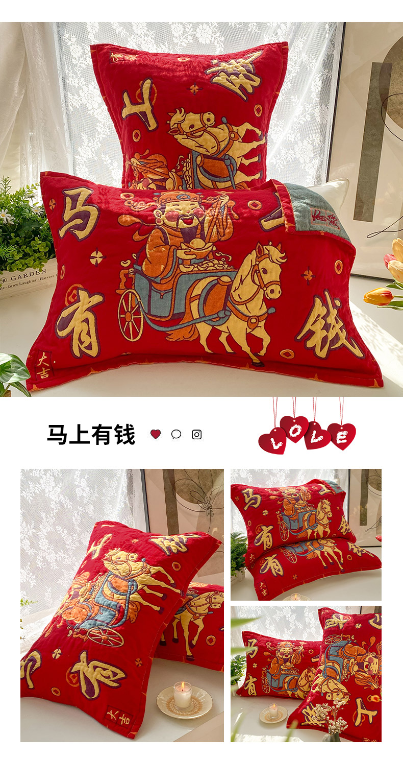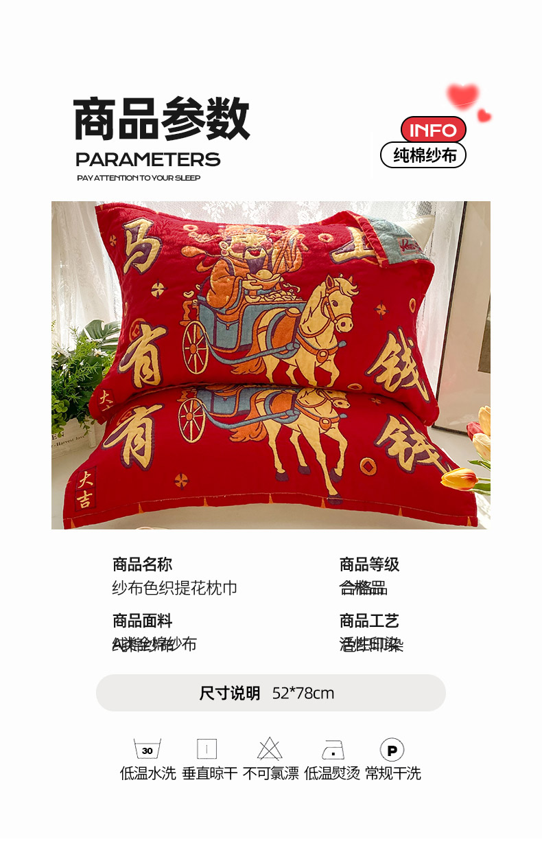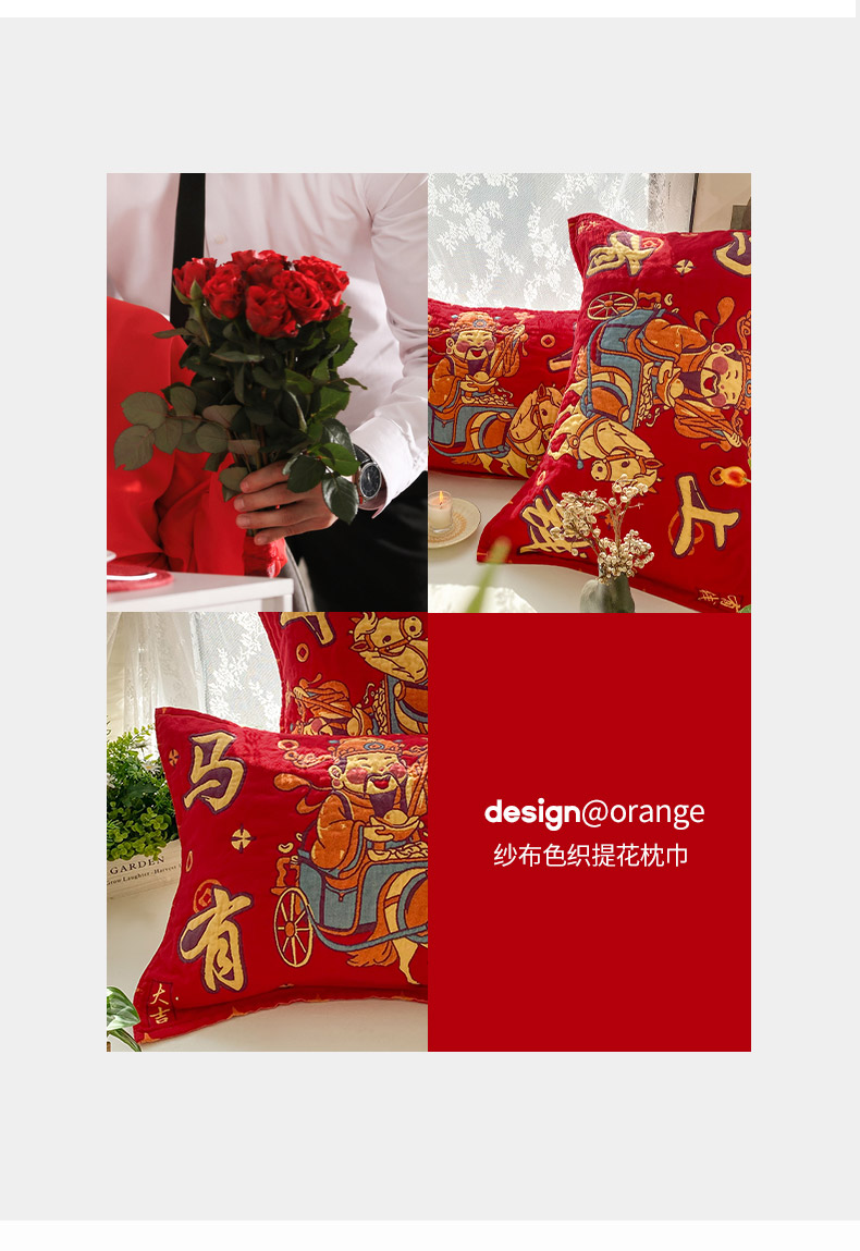 (总)美宜家 2025高档喜庆大红纯棉情侣枕巾枕套加大加厚,被爱,财运享通,郎才女貌,马上有钱,事事如意,喜至福来