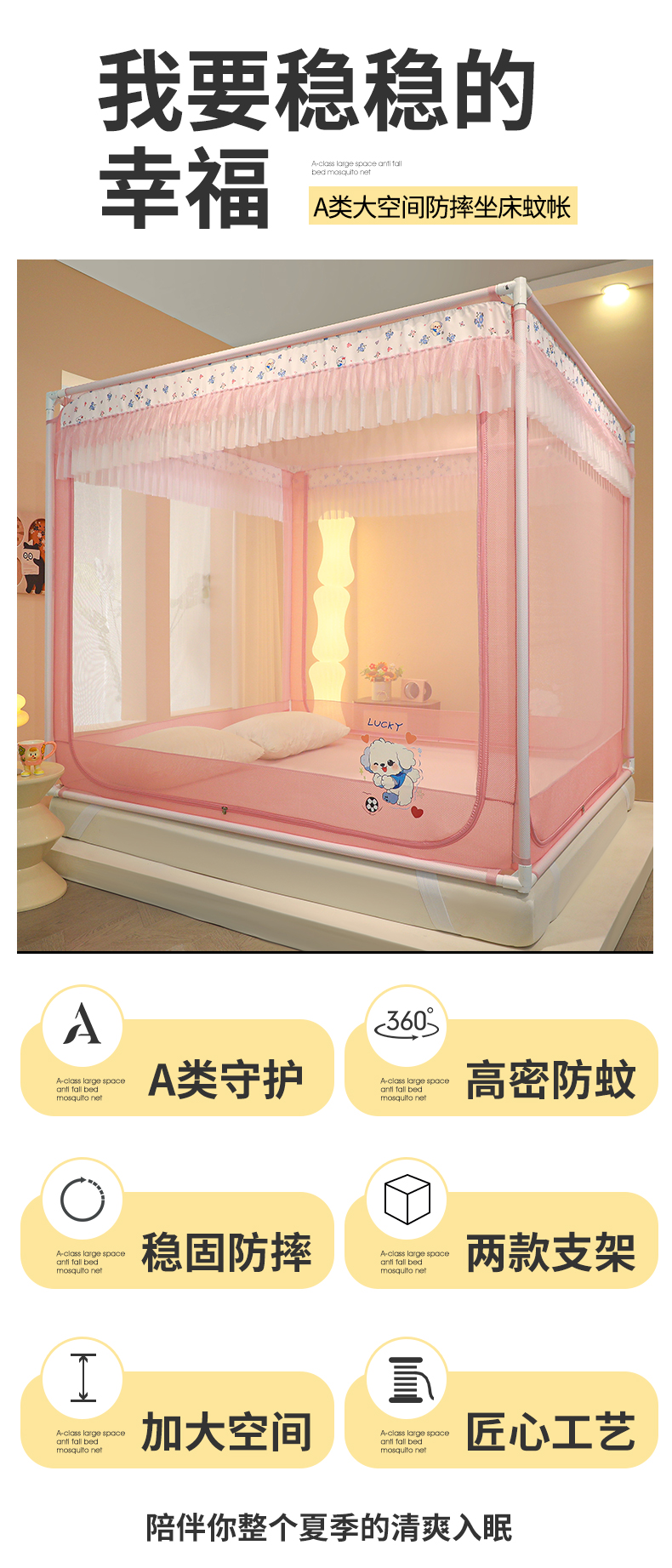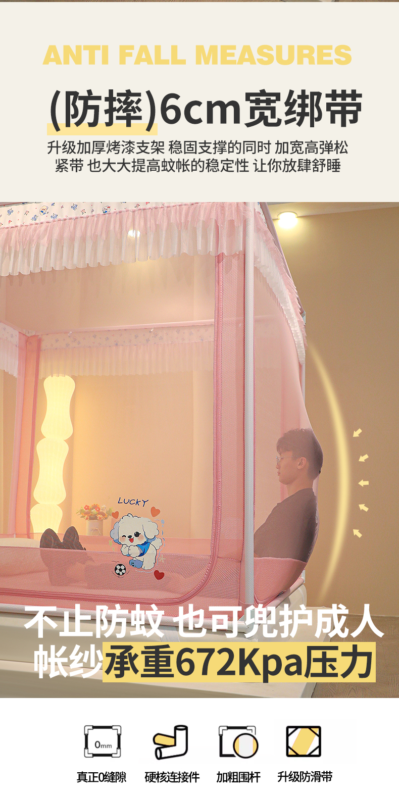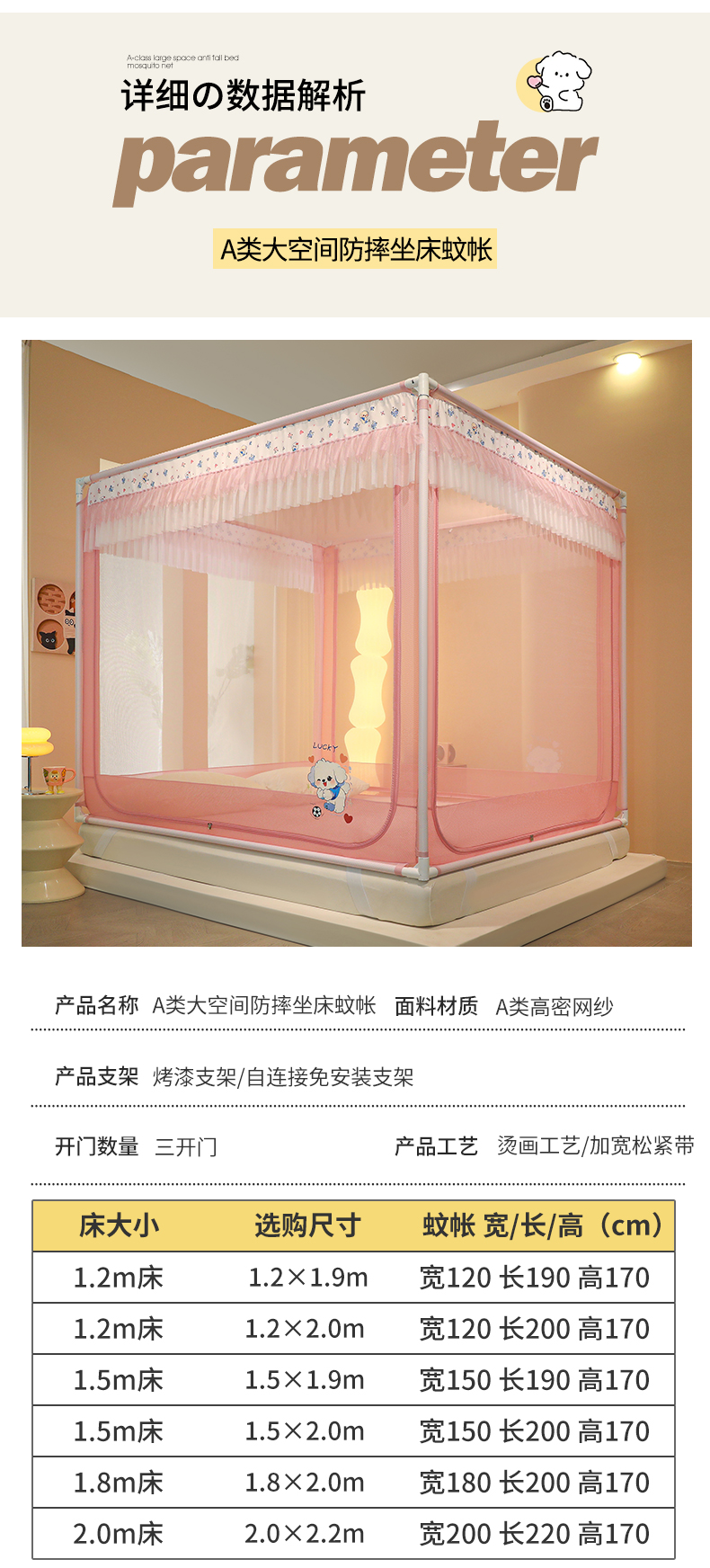 当前位置: 91家纺网 > 商品网购 > 床上用品 > 蚊帐 > 坐床式蚊帐 > 迪凡保罗蚊帐 2025新款2404+2502外穿杆防摔坐床蚊帐 2502樱花粉