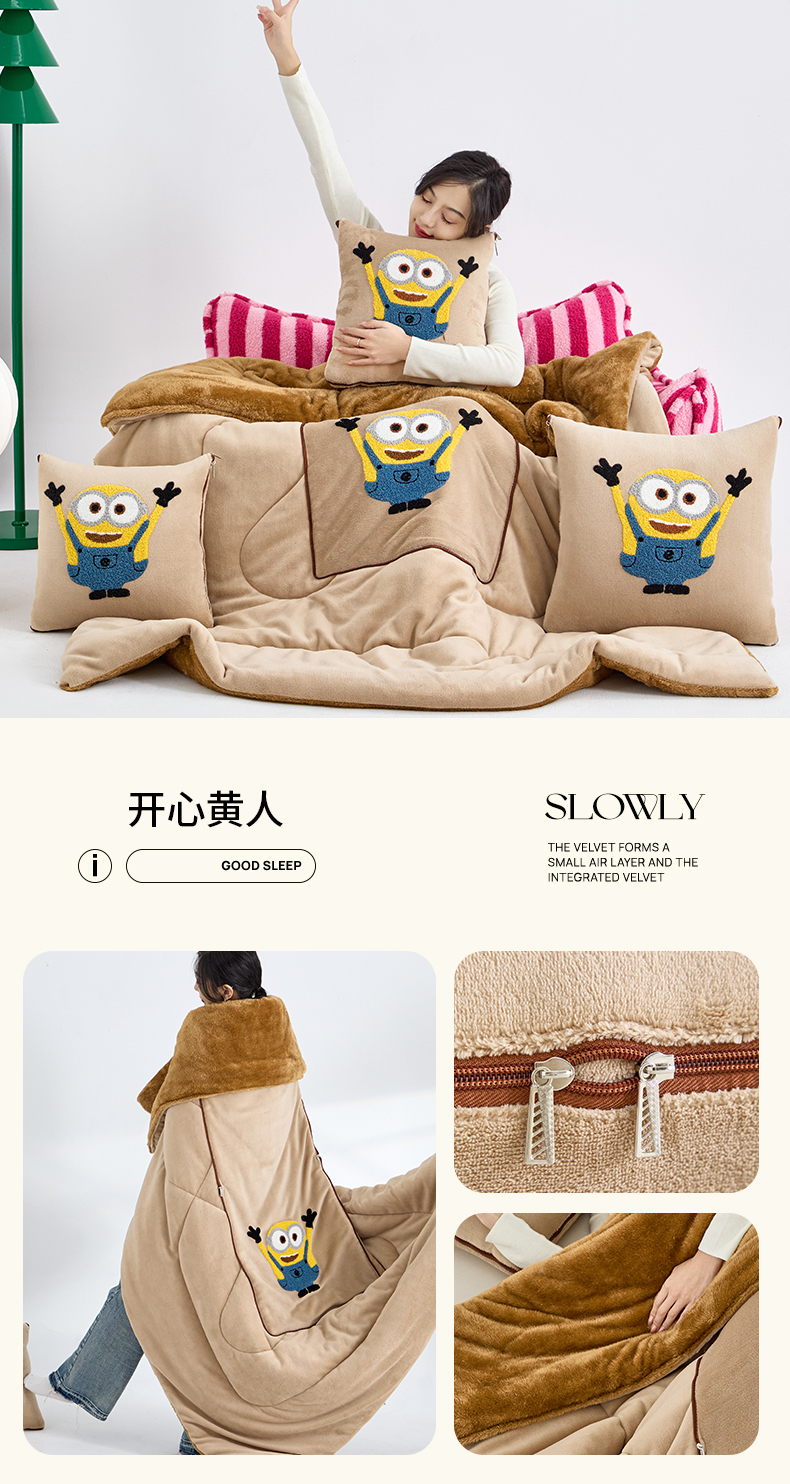 商品名称:宝马家纺(原梦童画) 2025新款小黄人抱枕被加厚抱枕被 开心黄人