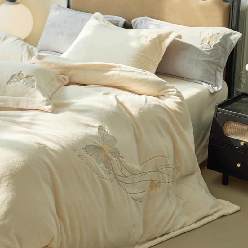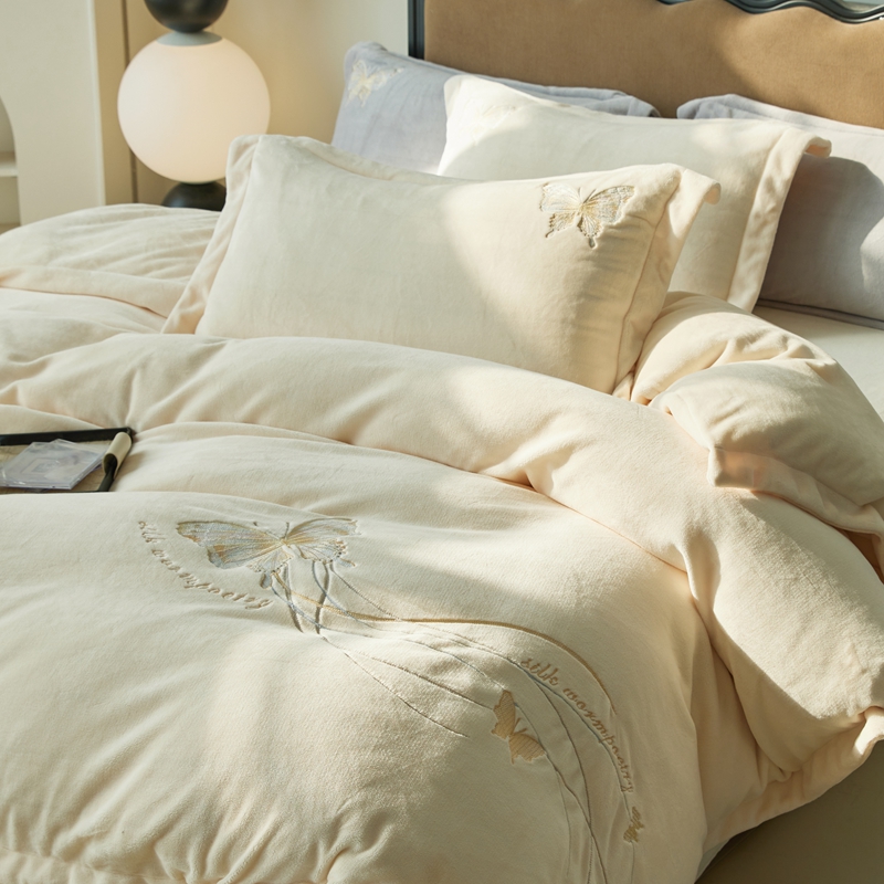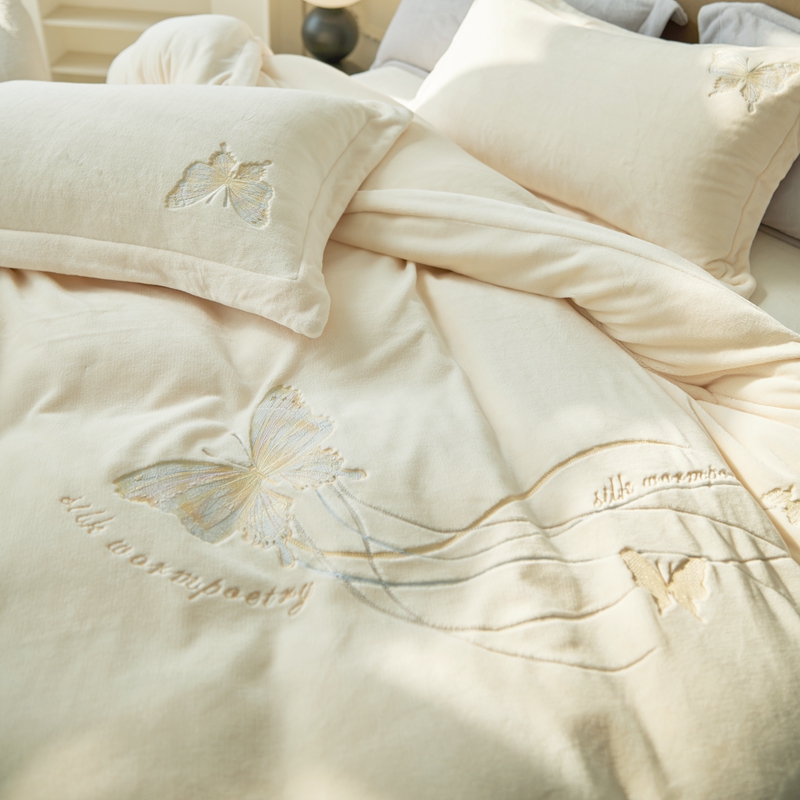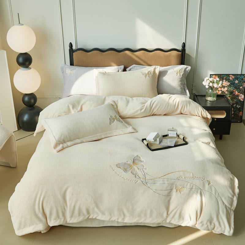 商品名称:佑先生 2025新款蝴蝶绣花绒四件套 可可淡奶白