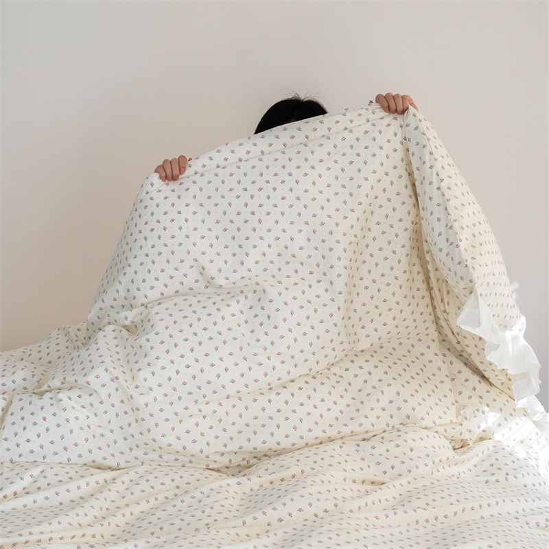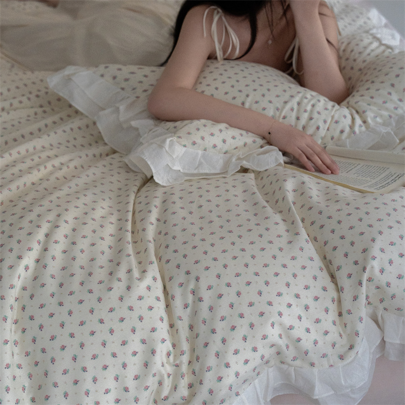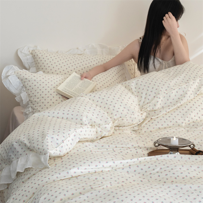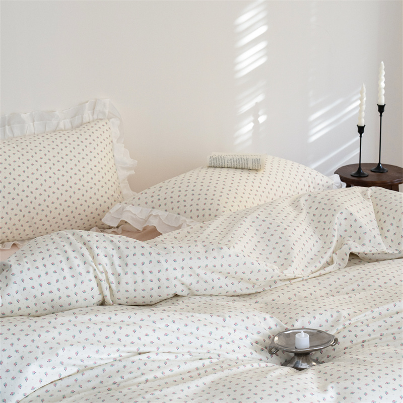 (总)尺素 2025新款田园小清新纯棉四件套出口韩国ins博主风全棉被套纯色加大床单1.8床笠印花枕套学生宿舍三件套,春不晚 桃粉,花似锦 奶白,紫鸢千夏紫