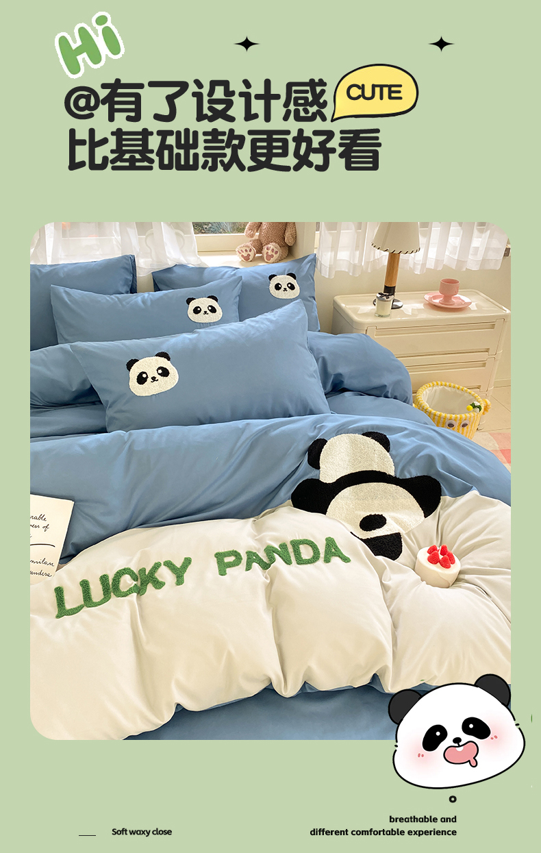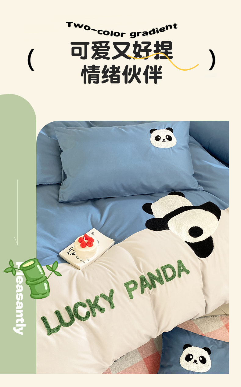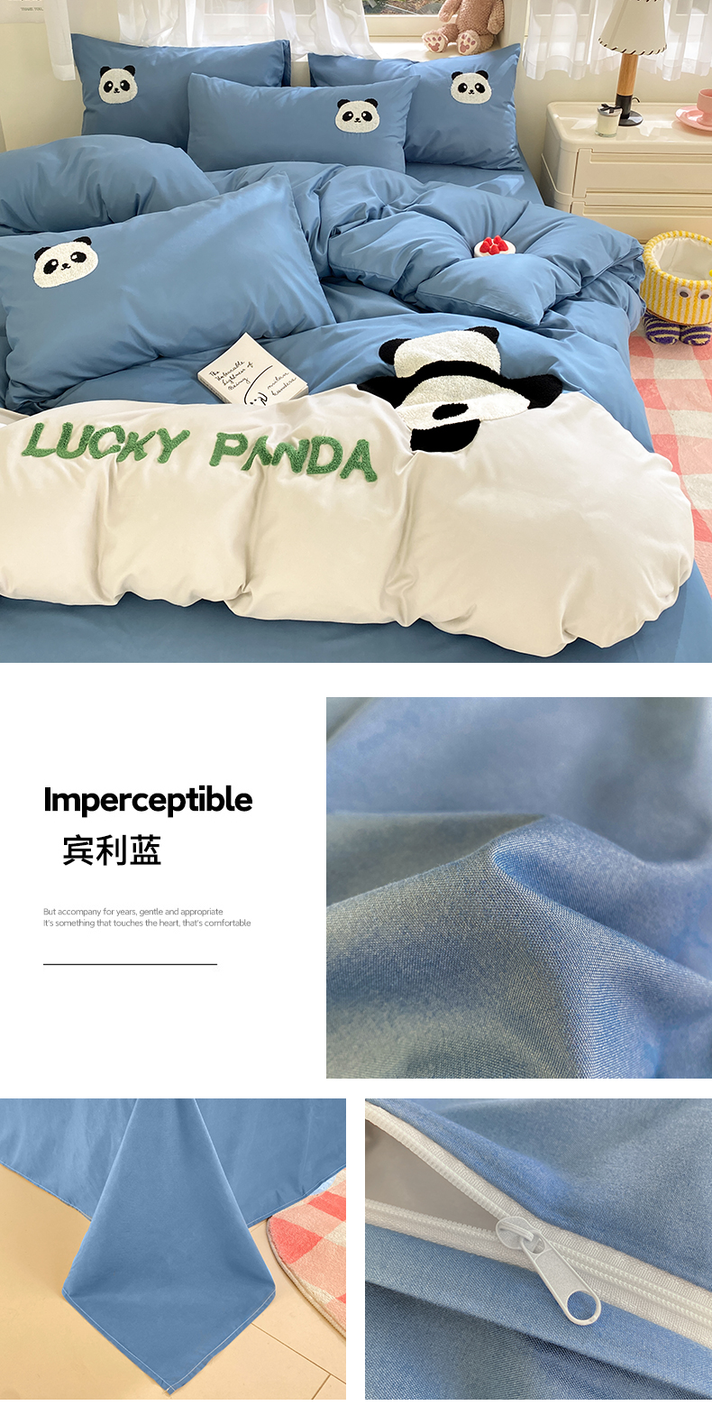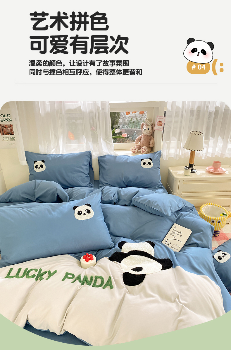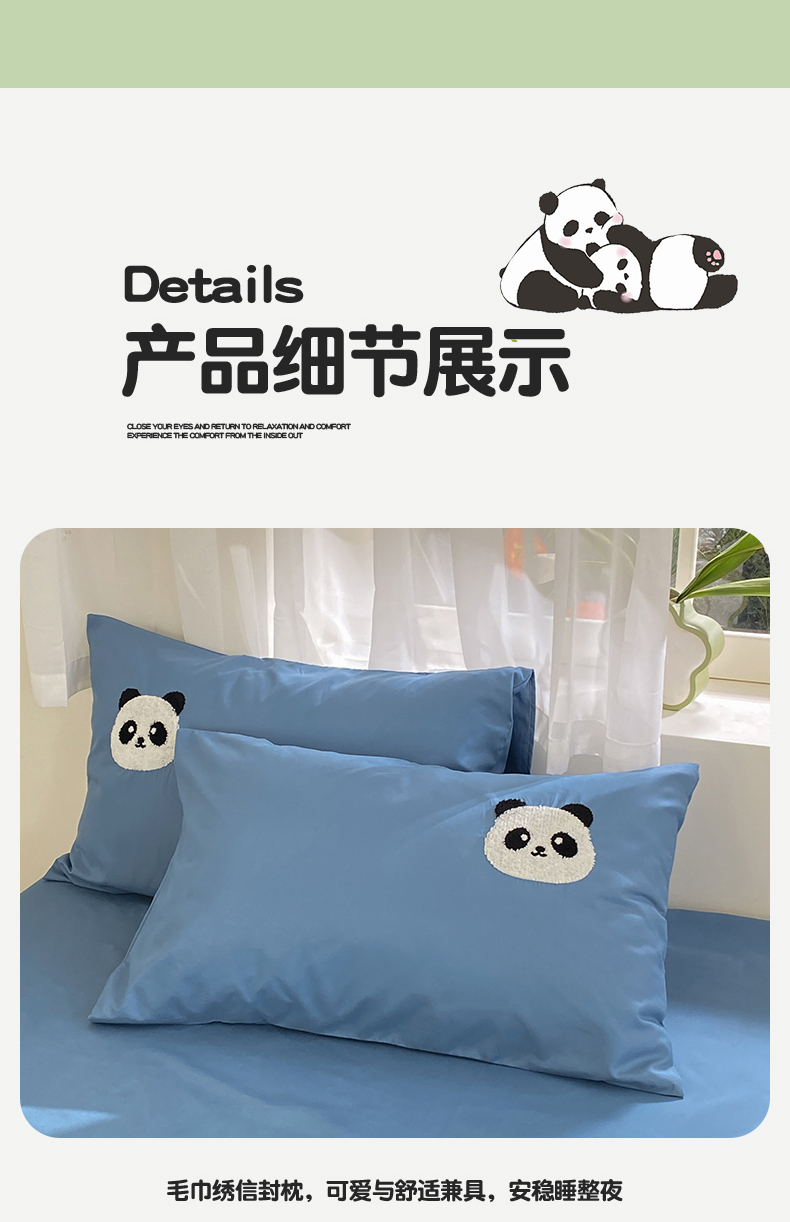 商品名称:盛秋家纺 2025新款A类水洗棉毛巾绣四件套-胖达 胖达-宾利蓝