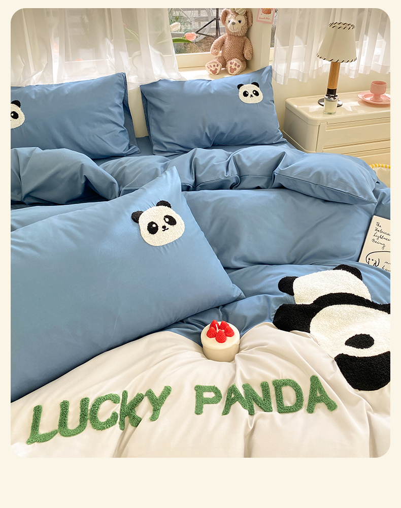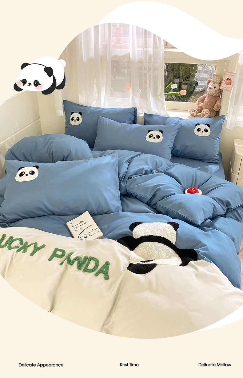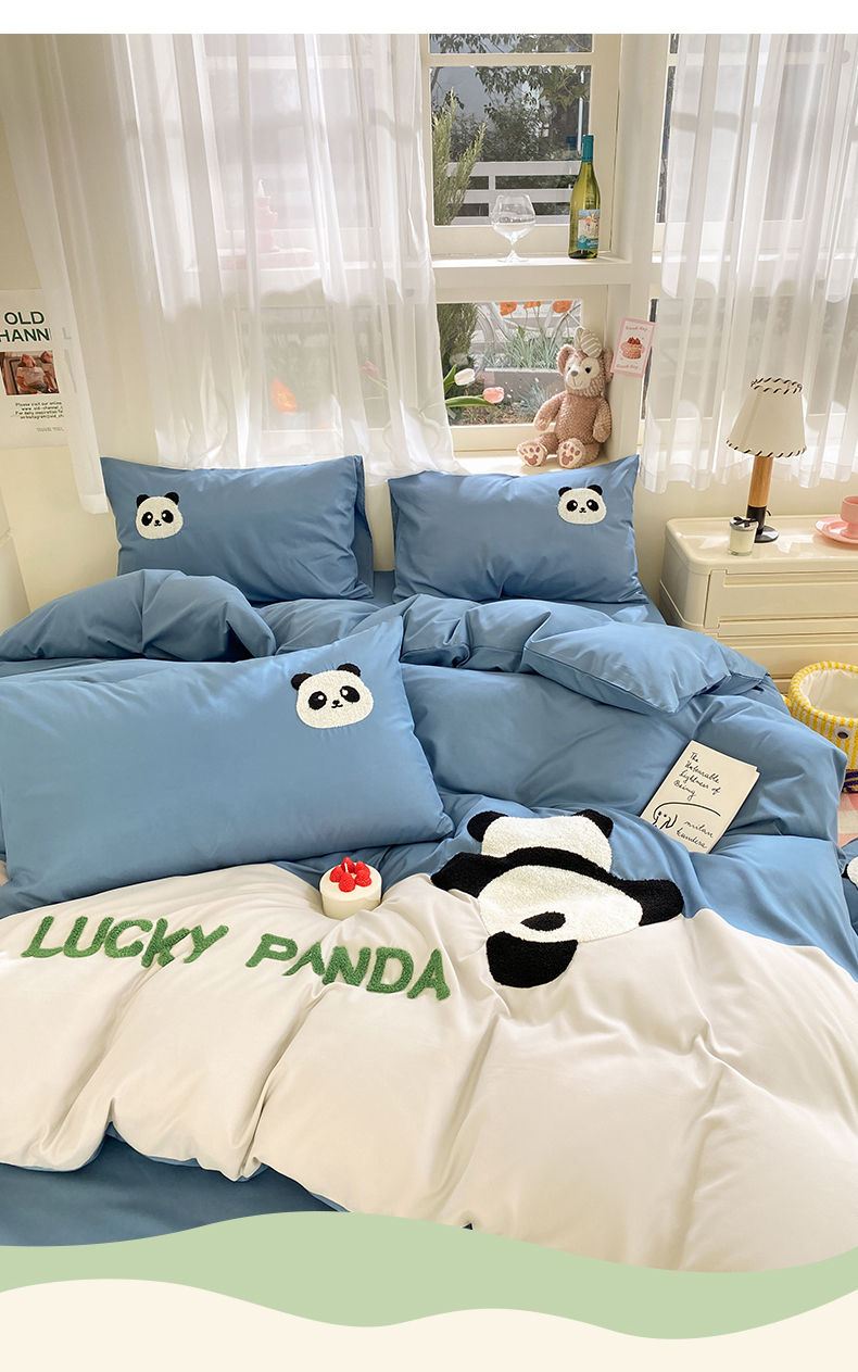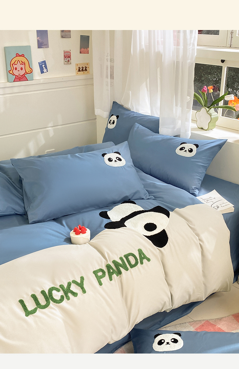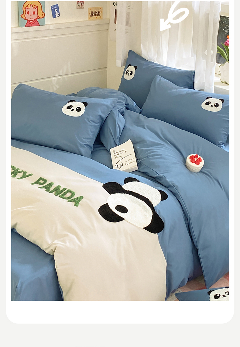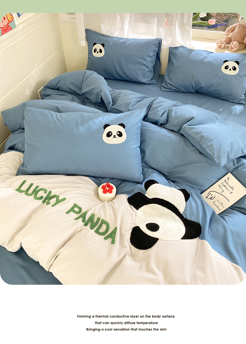 商品名称:盛秋家纺 2025新款A类水洗棉毛巾绣四件套-胖达 胖达-宾利蓝