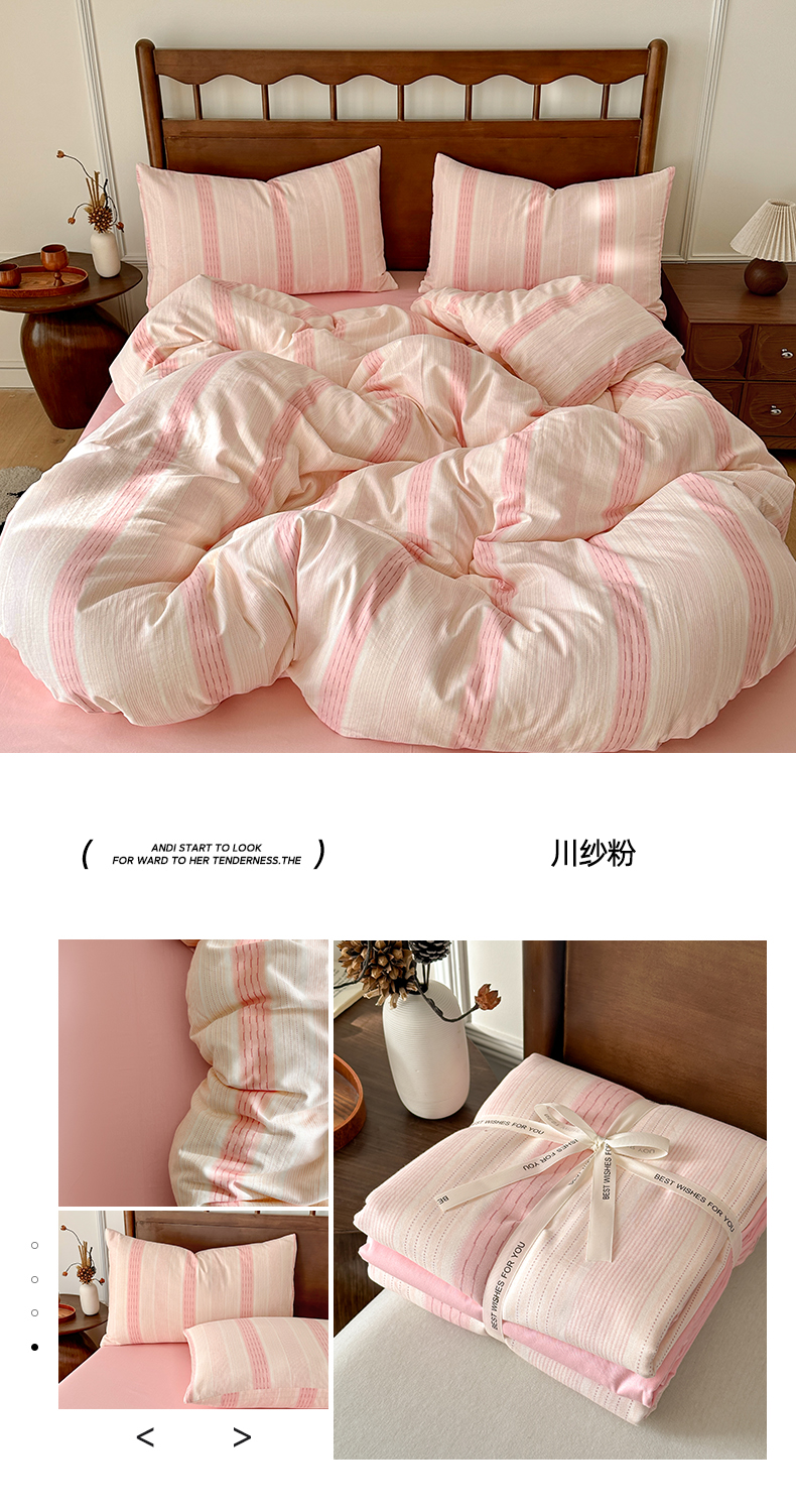 商品名称:呗旺鹿 2025新款A类母婴级全棉有氧双层纱印花四件套 川纱粉