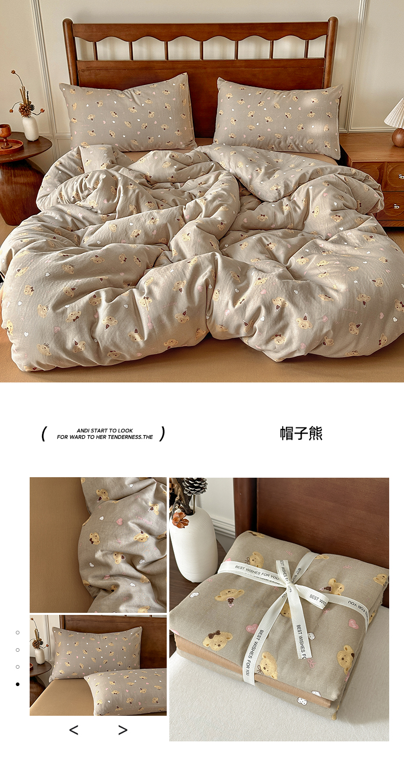 商品名称:呗旺鹿 2025新款A类母婴级全棉有氧双层纱印花四件套 帽子熊
