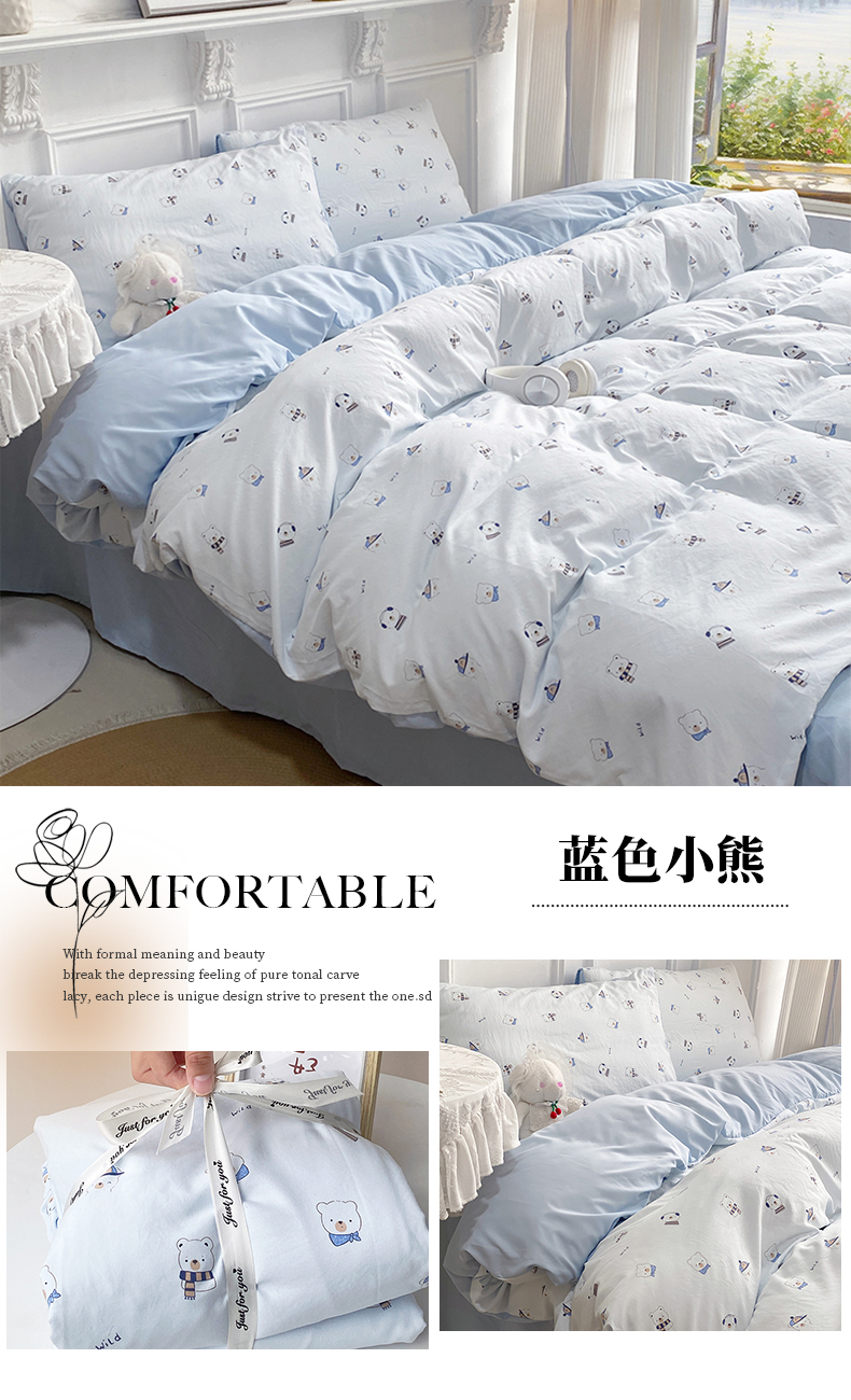 当前位置: 91家纺网 > 商品网购 > 床品套件 > 四件套 > 水洗棉四件套 > 丫丫家纺 2025新小红书直播热款水洗糯小棉四件套软敷敷糯叽叽ins卡通小清新学生床加大号小号单被套单床笠三四 蓝色小熊