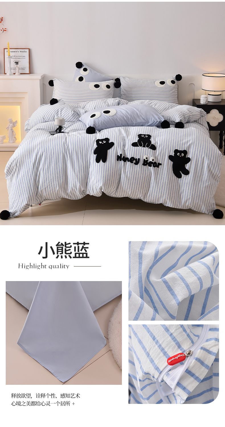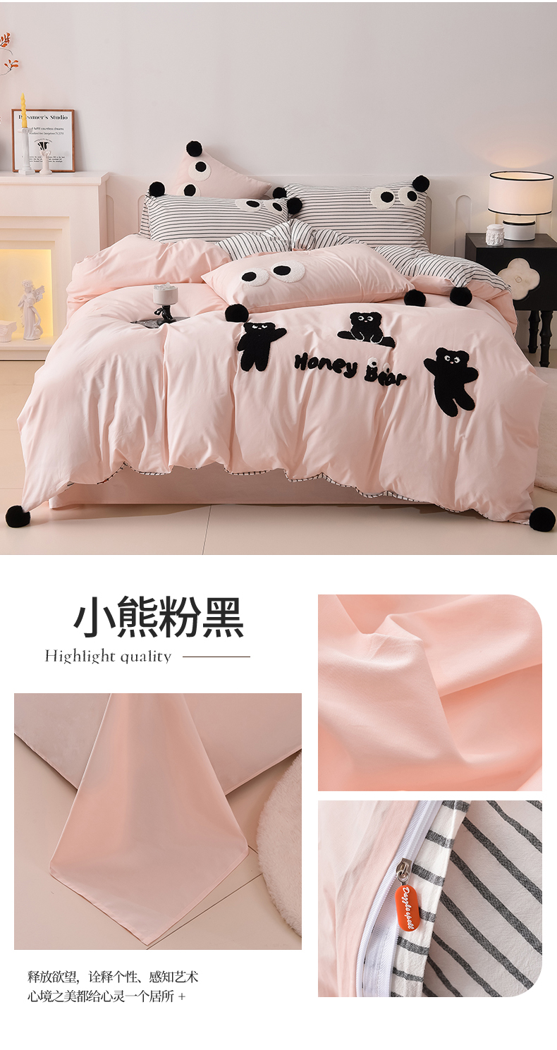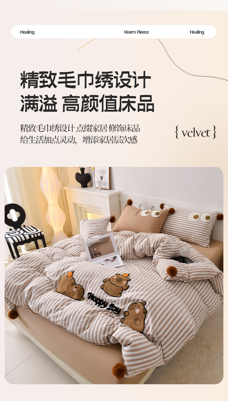 (总)炫拼家纺 2025新款毛球卡通毛巾绣A类全棉40支水洗棉四件套