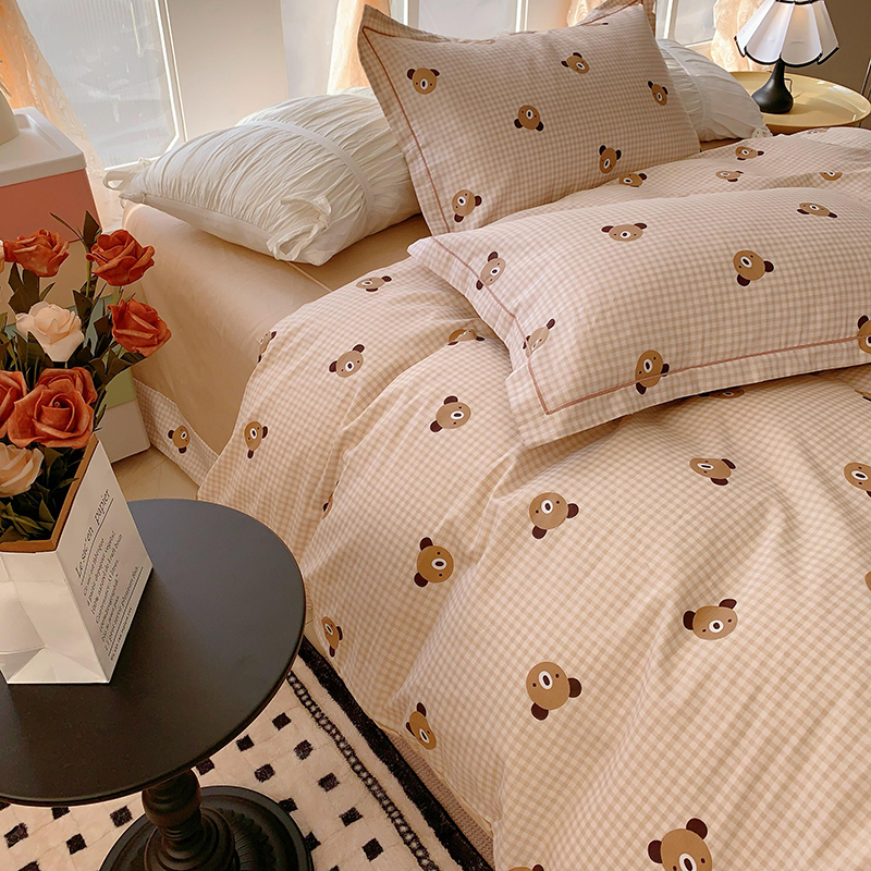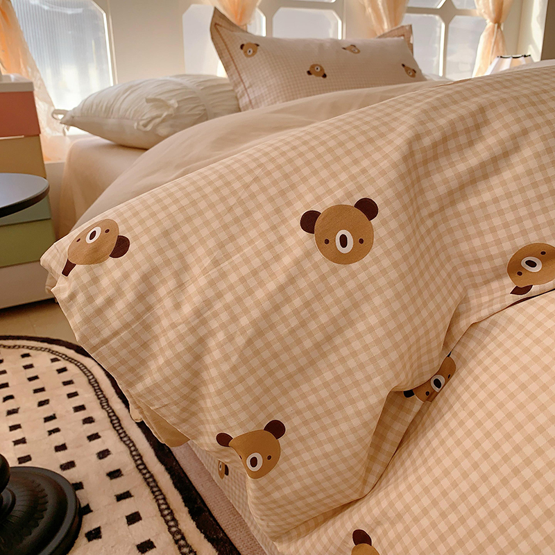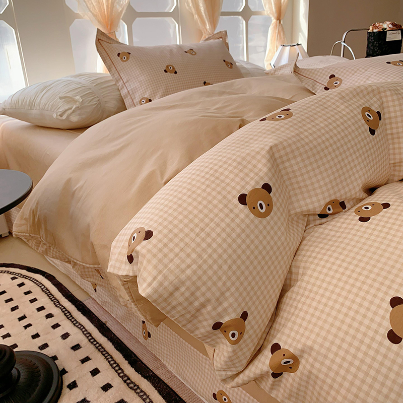 2025新款亲肤舒适小清新全棉四件套小号标准都有 小浣熊咖