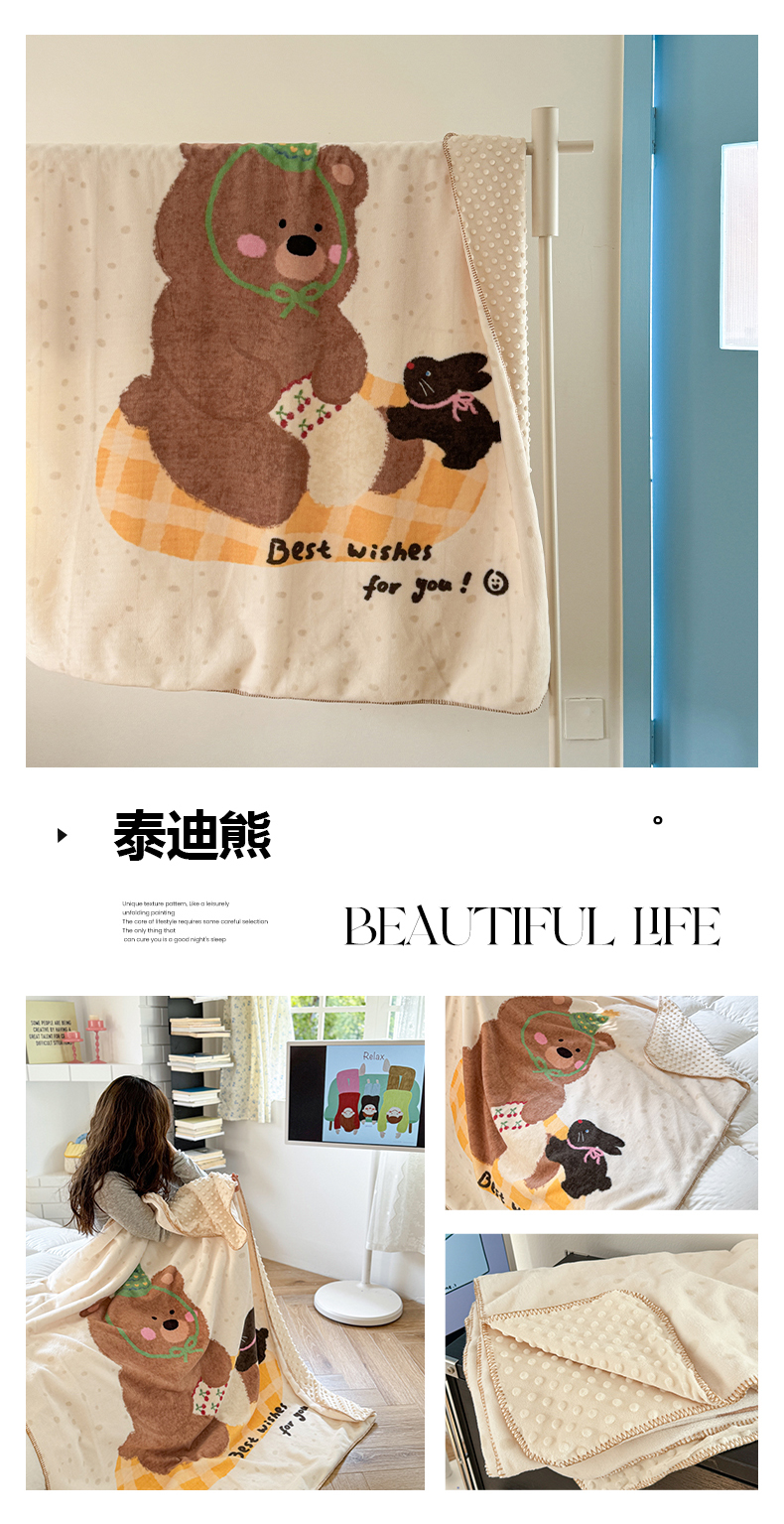 暖生活 2025新款全消光牛奶绒豆豆毯毛毯 泰迪熊