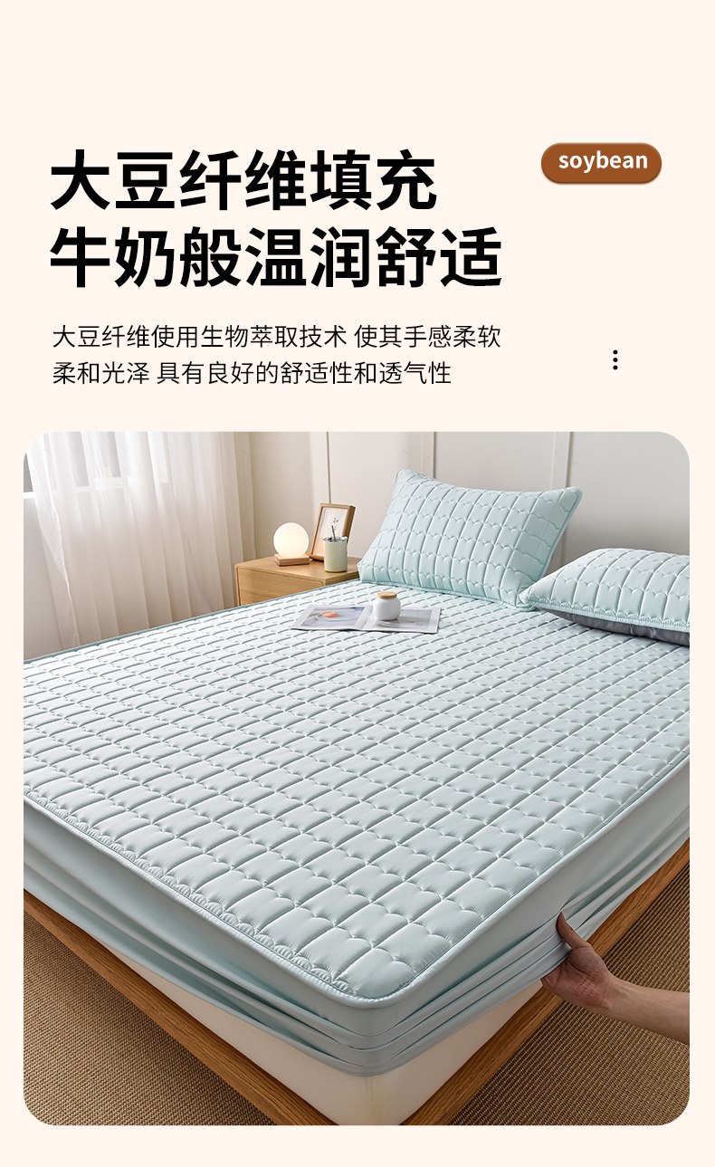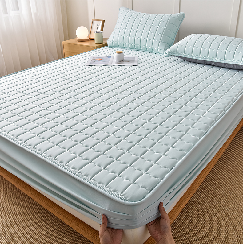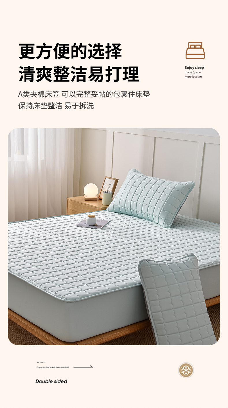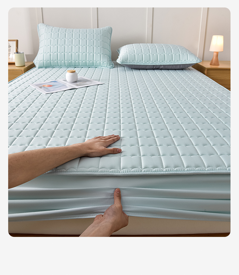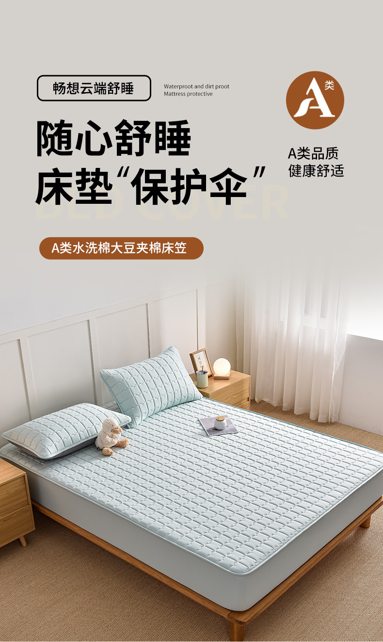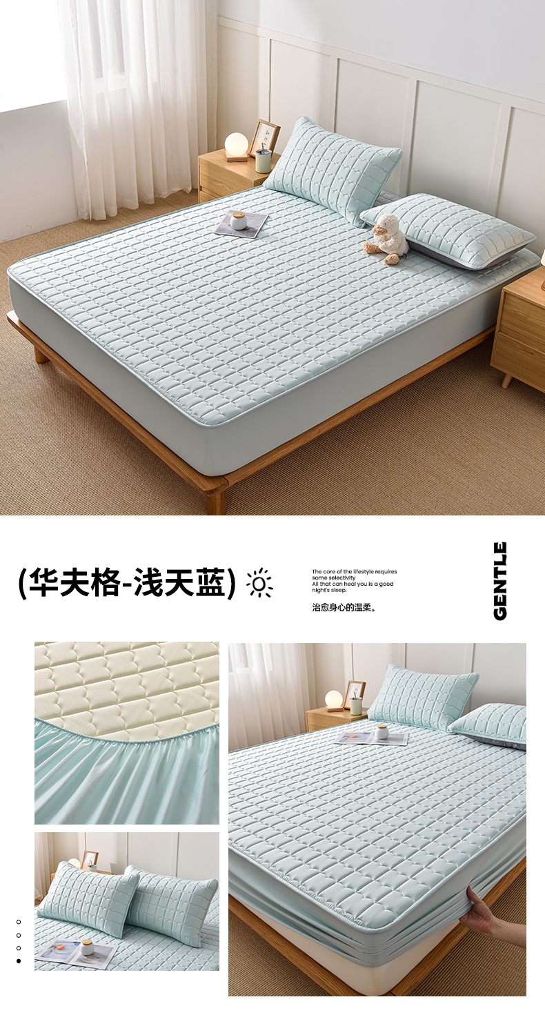 布卢姆床垫 2025新款A类水洗棉大豆夹棉床笠 华夫格-浅天蓝