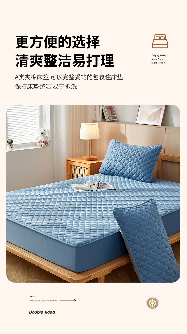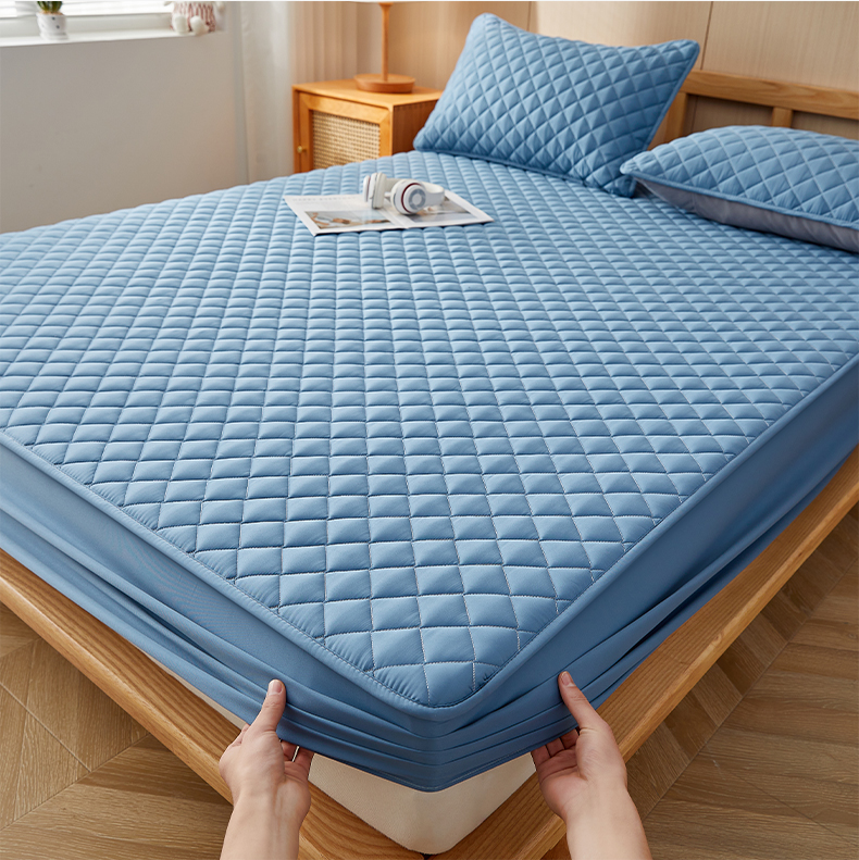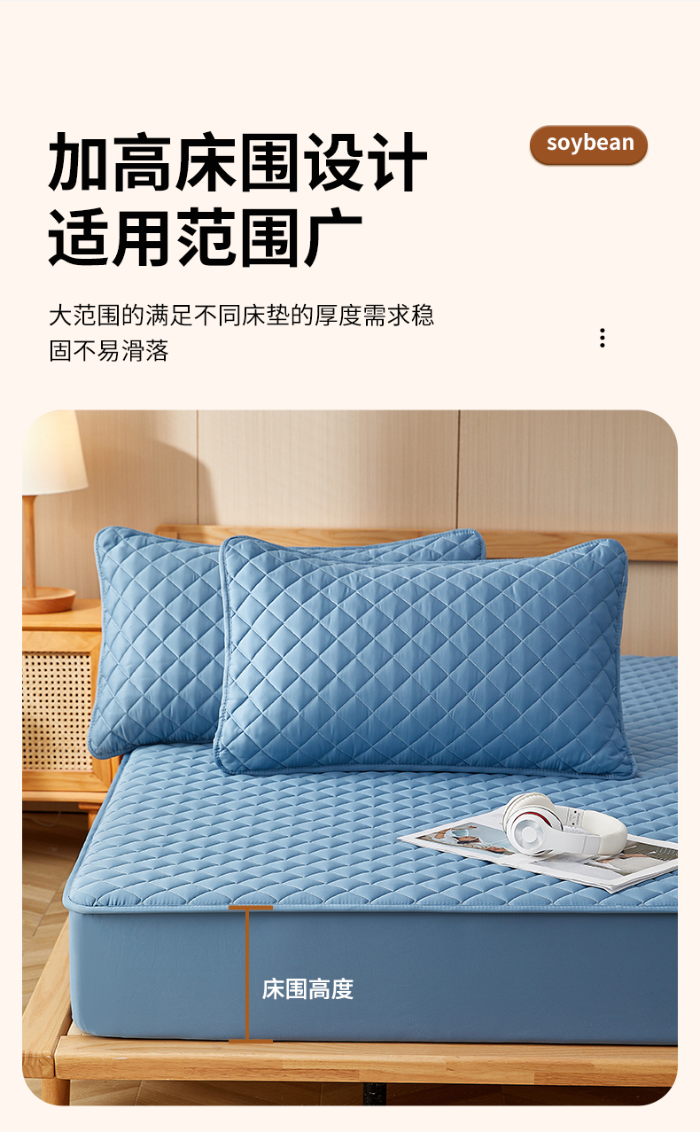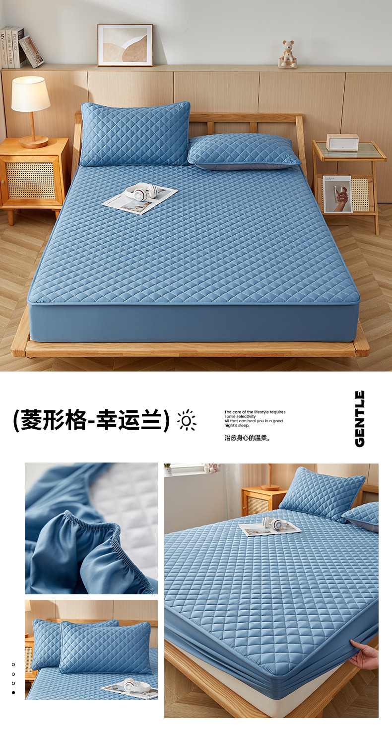 布卢姆床垫 2025新款A类水洗棉大豆夹棉床笠 菱形格-幸运兰
