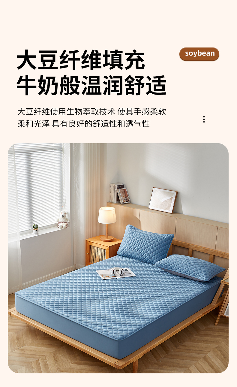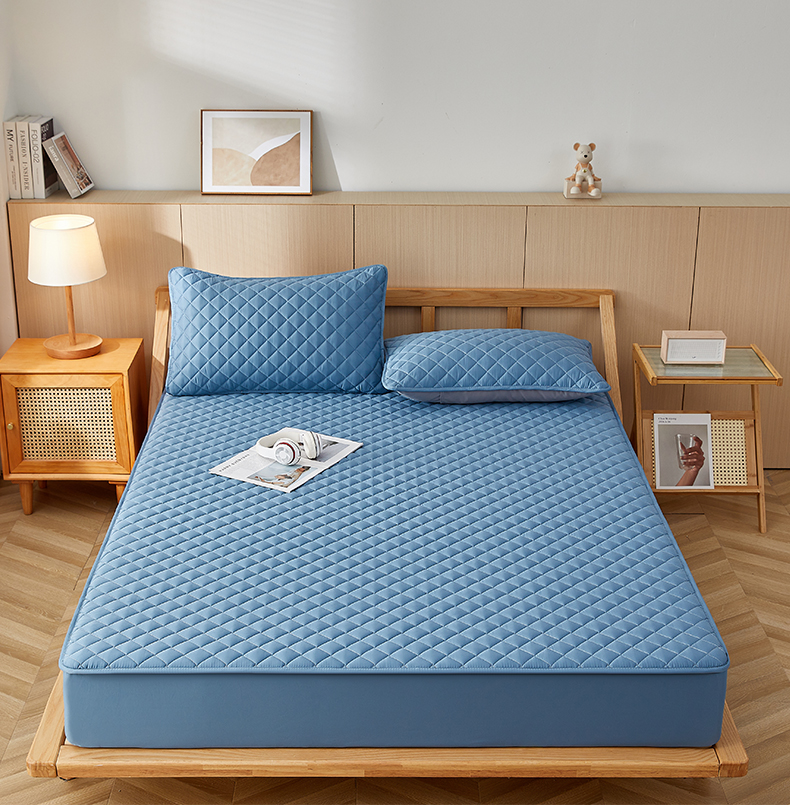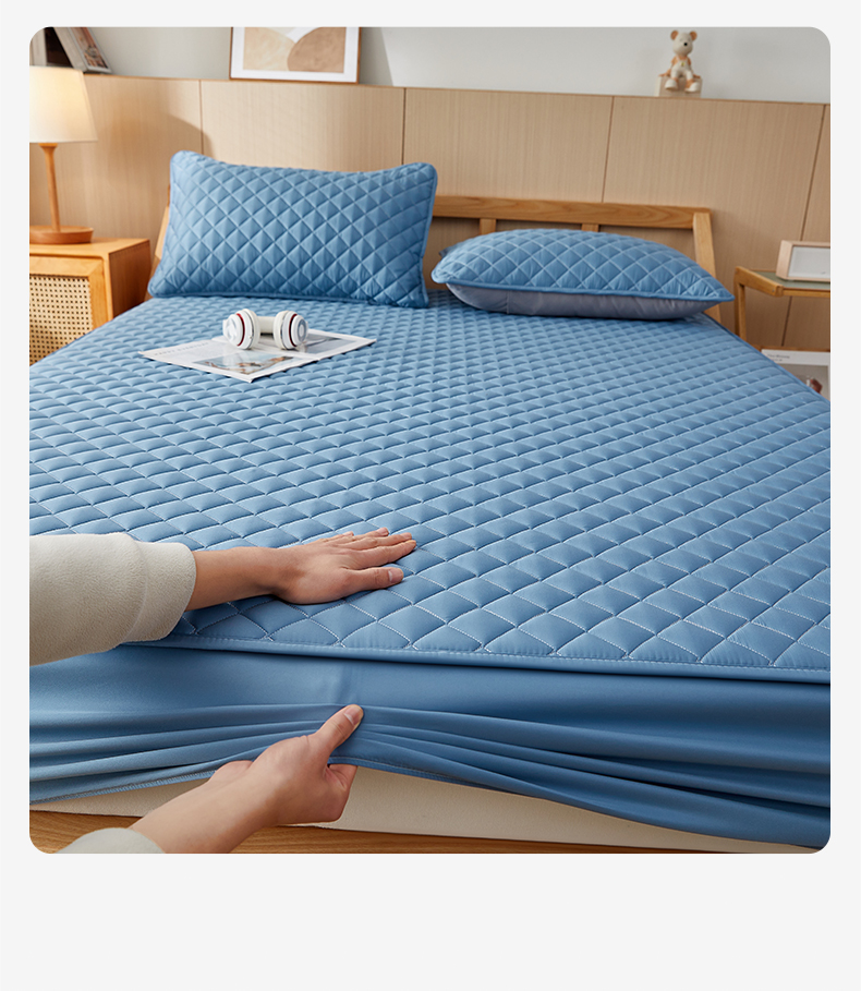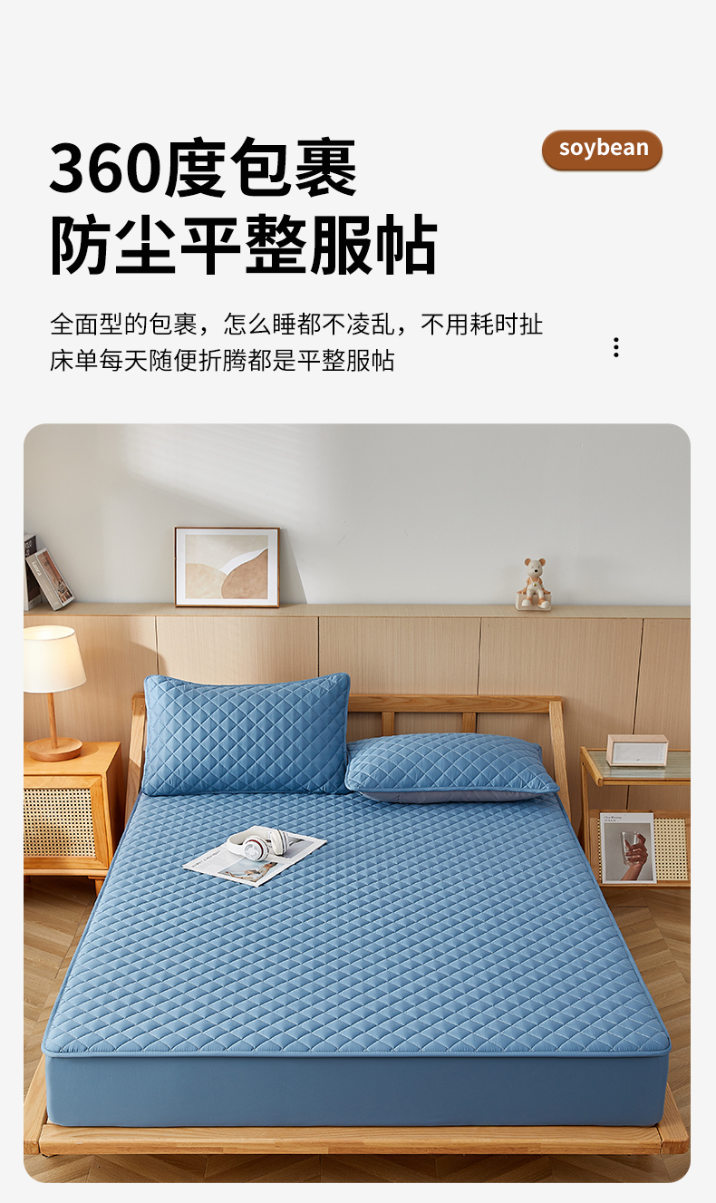 布卢姆床垫 2025新款A类水洗棉大豆夹棉床笠 菱形格-幸运兰
