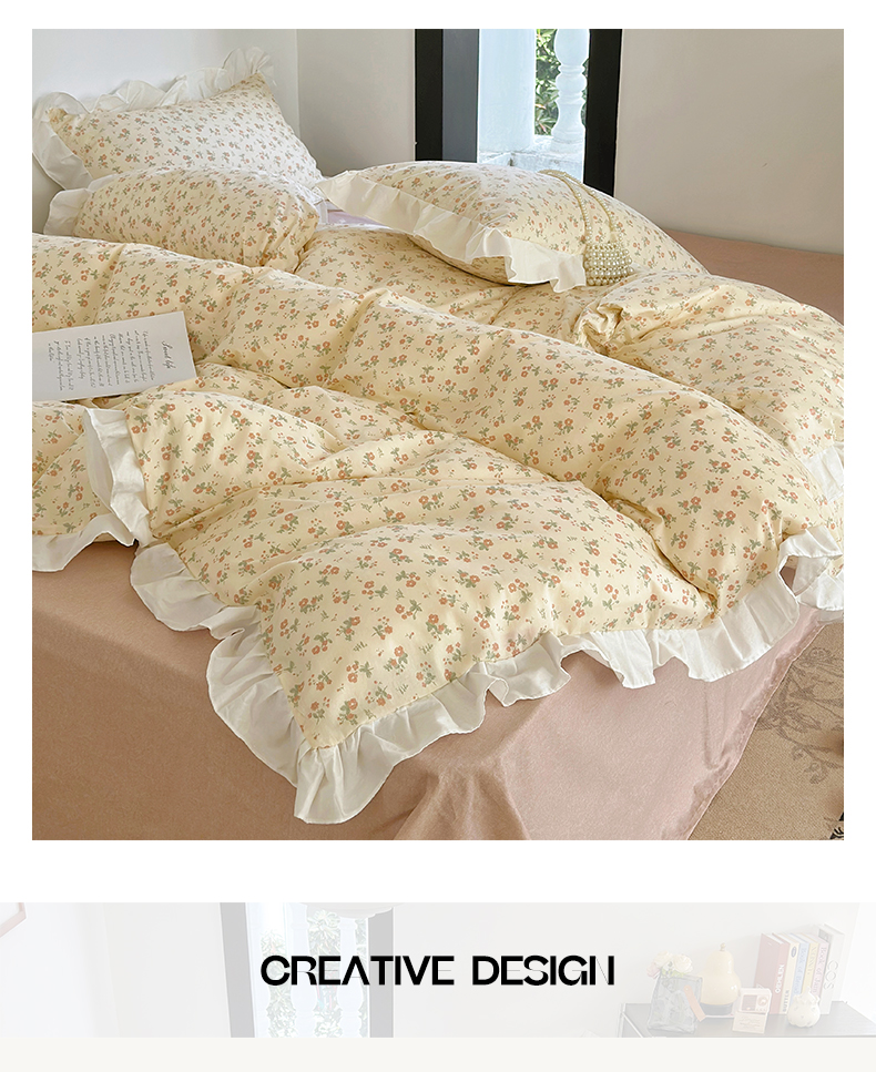 澳萝拉 2025新款全棉斜纹花边印花四件套 玛格丽