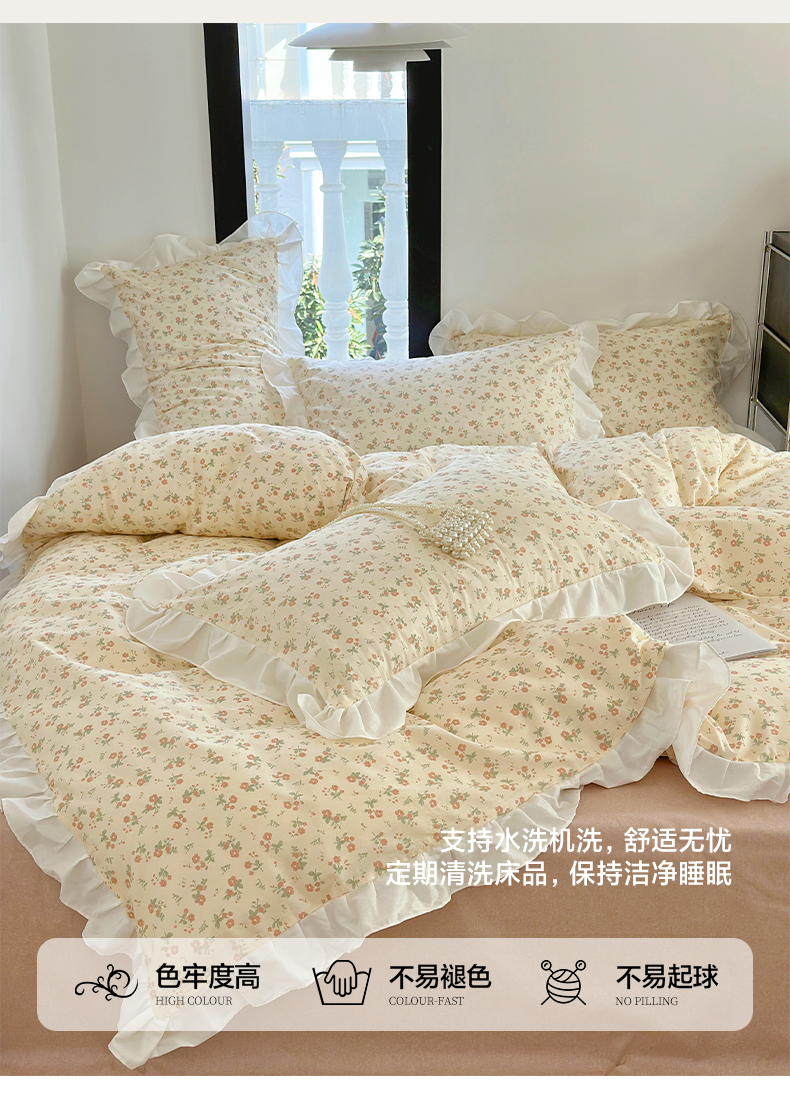 商品名称:澳萝拉 2025新款全棉斜纹花边印花四件套 玛格丽