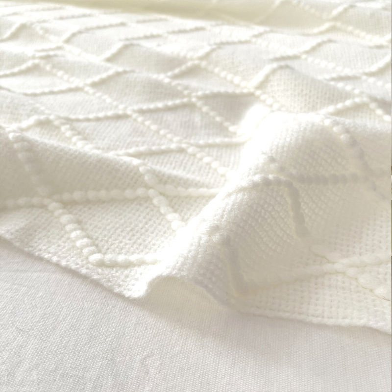 商品名称:朴尔家纺-毛巾被 2025新款菱形格条纹流苏手工针织毯 乳白色