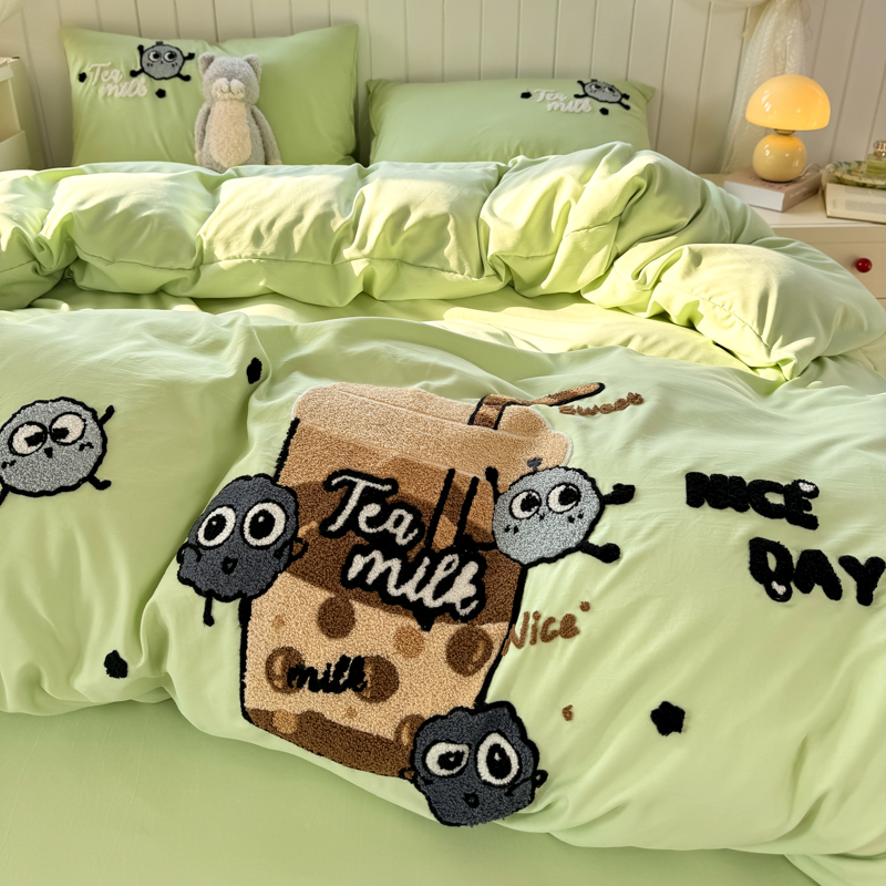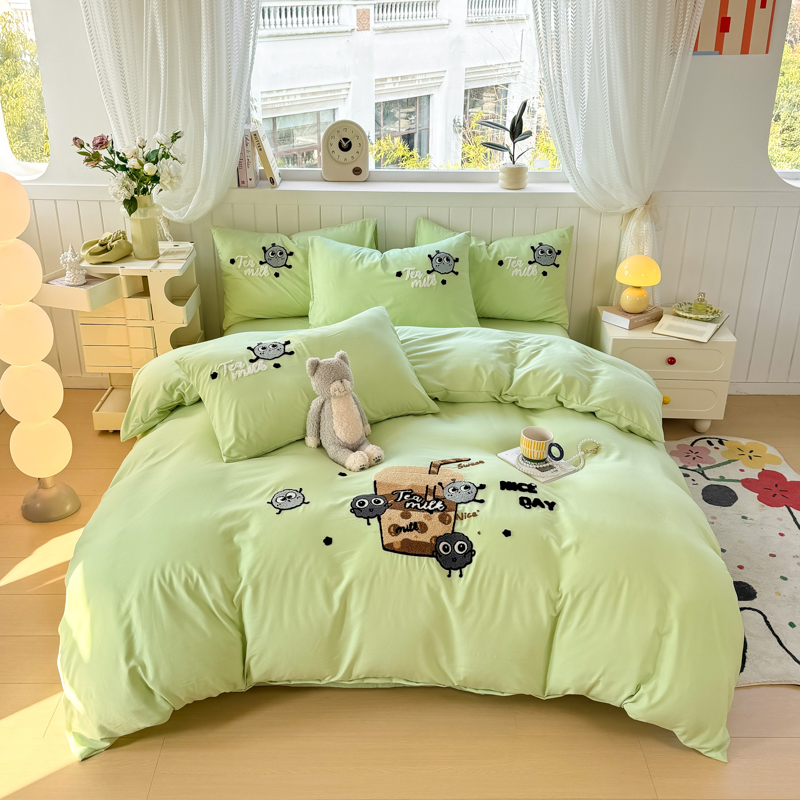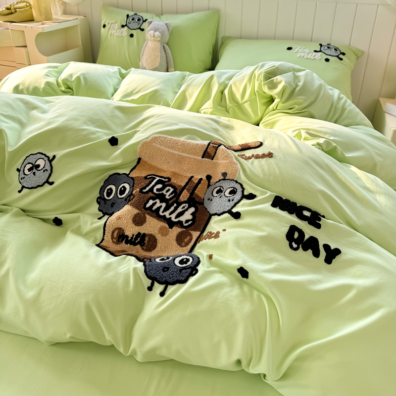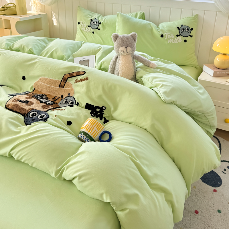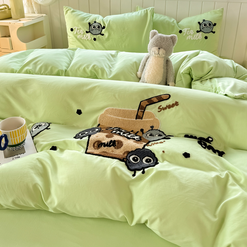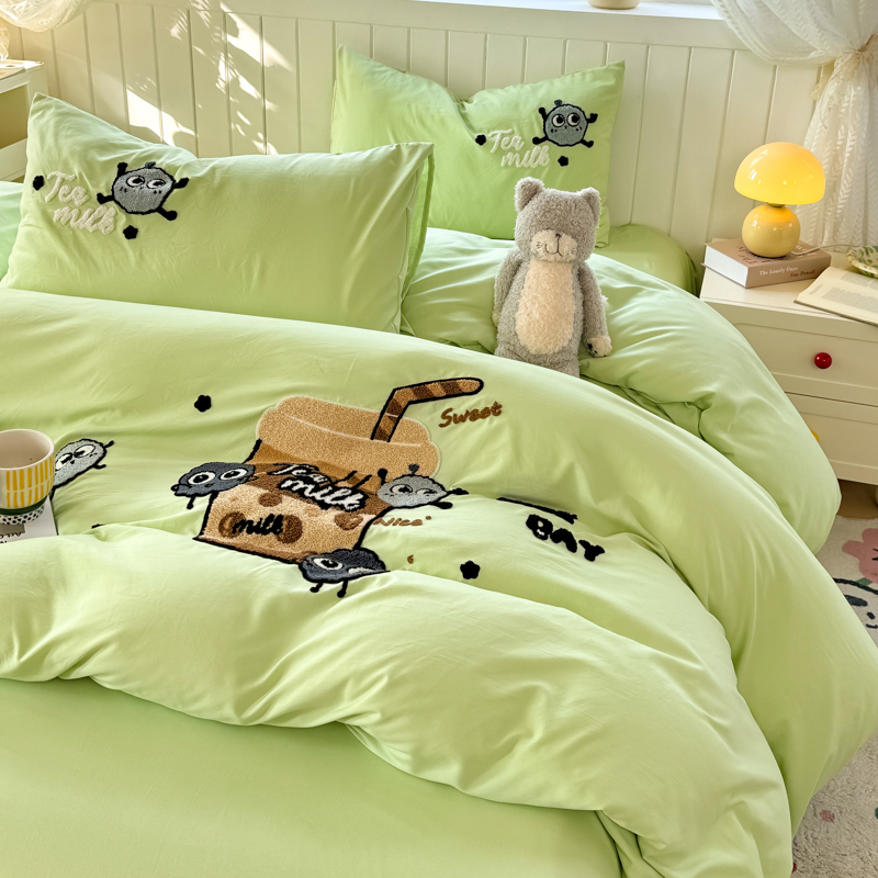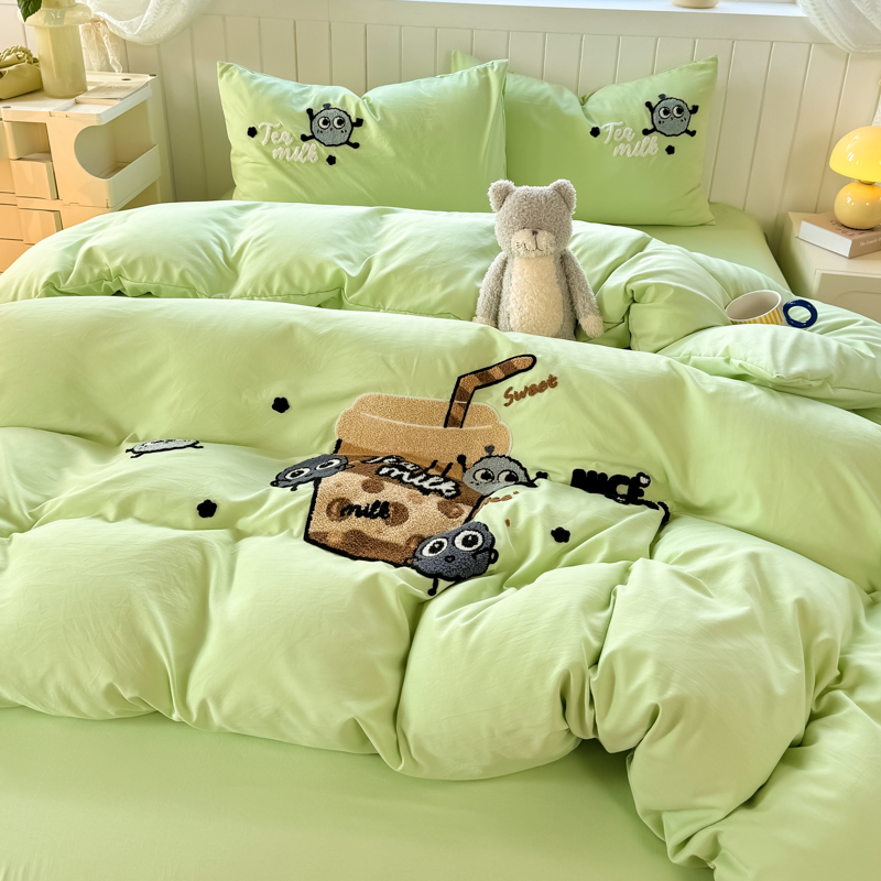当前位置: 91家纺网 > 商品网购 > 床品套件 > 四件套 > 水洗棉四件套 > 悦织湾 2025新款奶茶毛巾绣四件套水洗棉三件套学生宿舍单人双人床上用品4件套被套 青柠夏日-奶茶