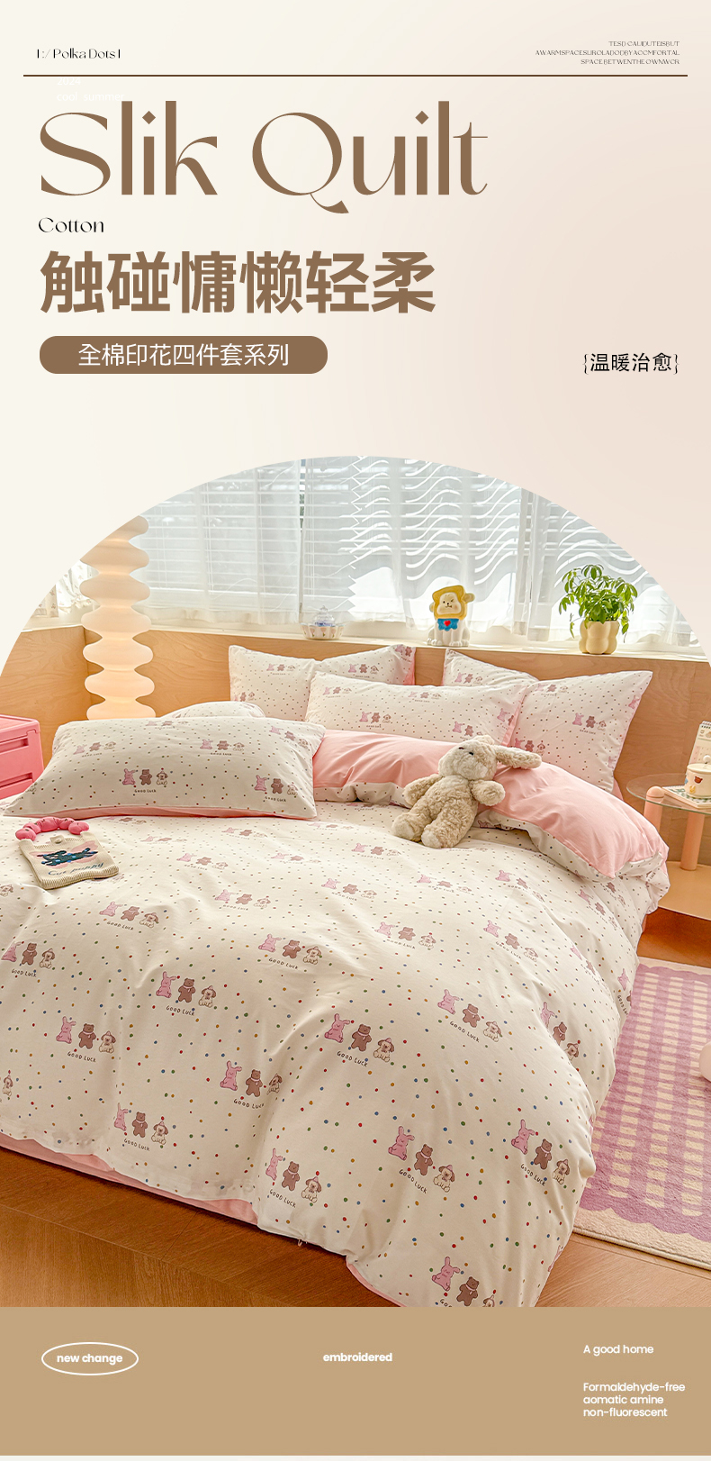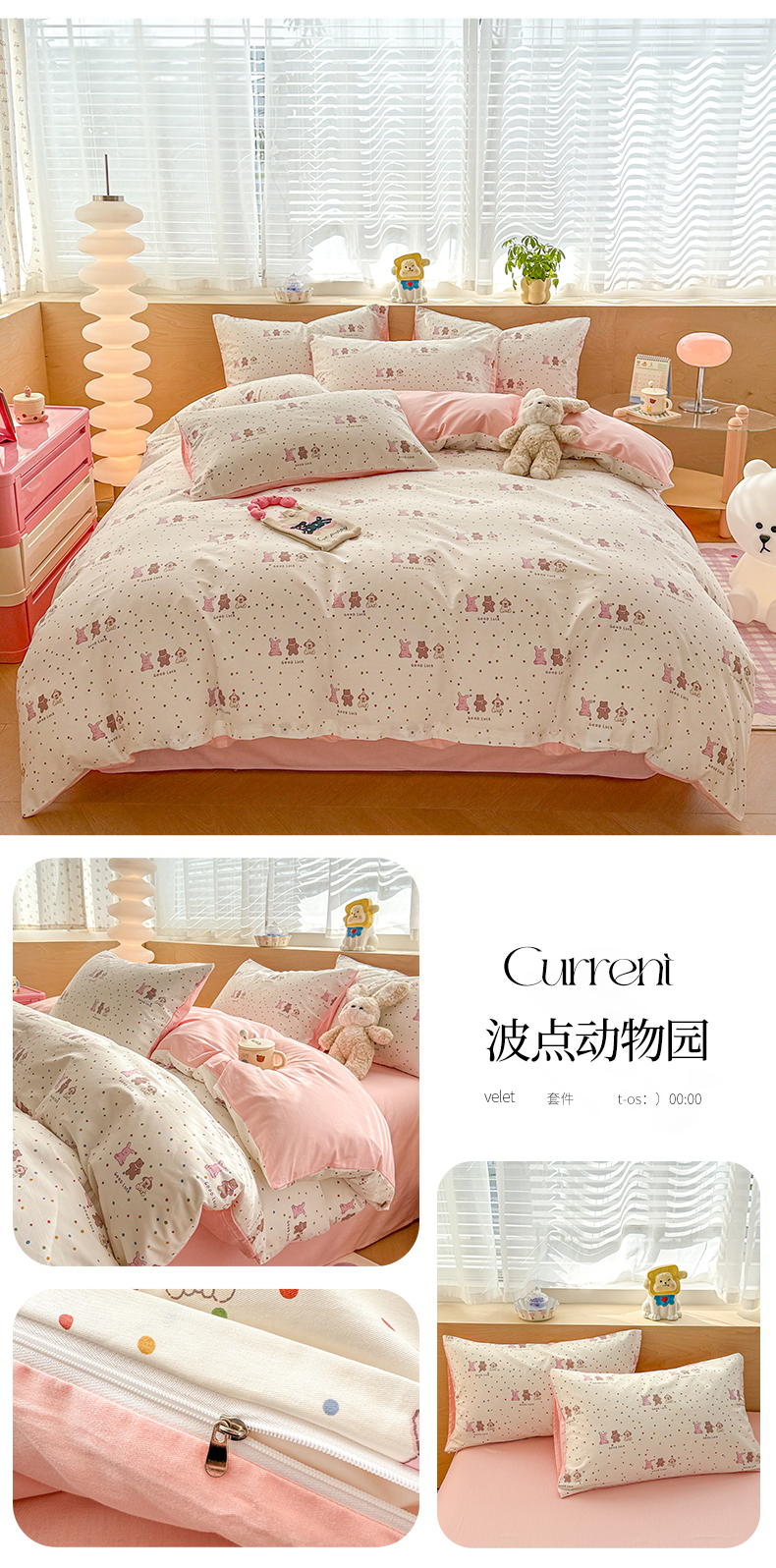 红嘴企鹅 2025新款纯棉印花系列四件套【含买家秀】 波点动物园