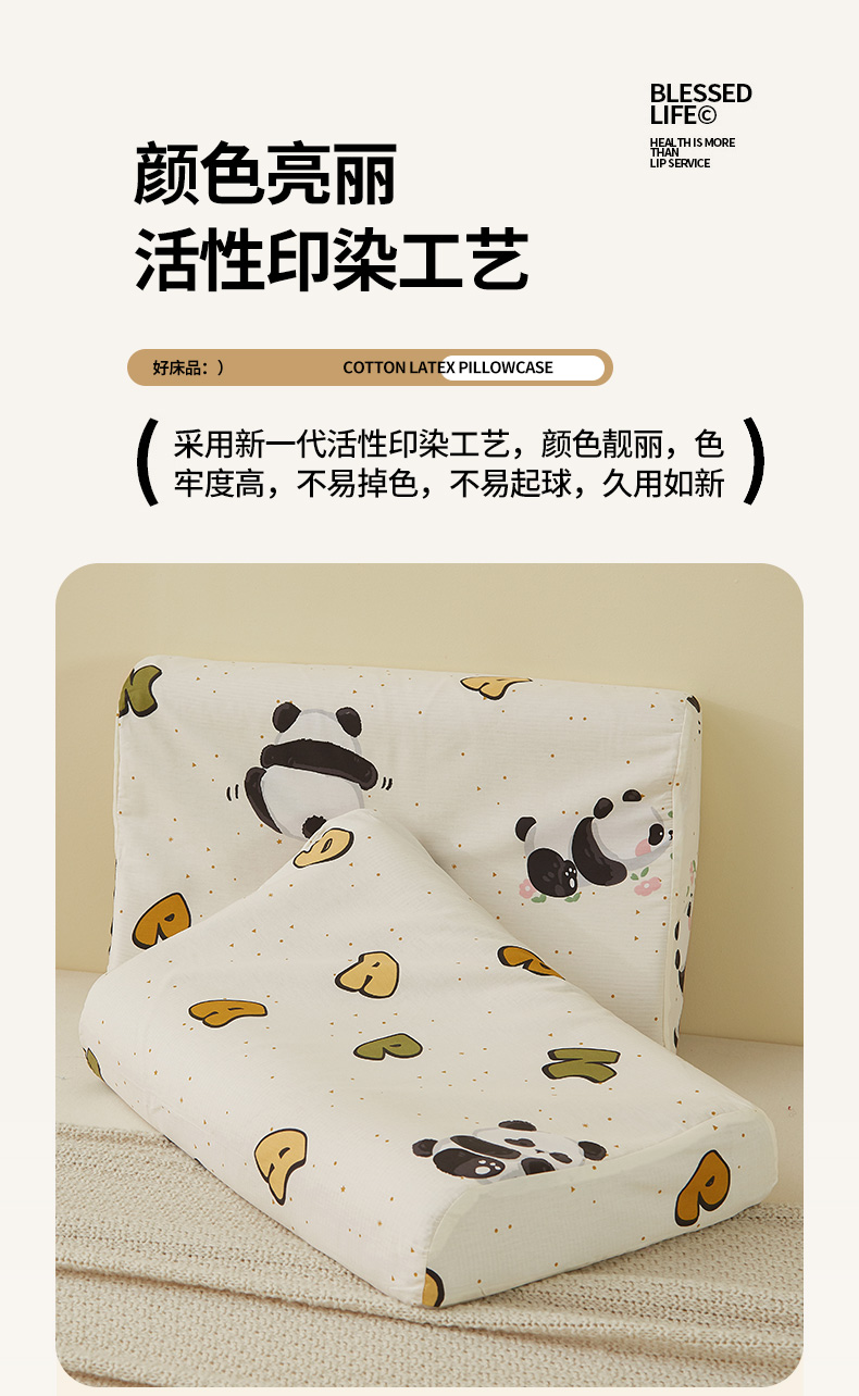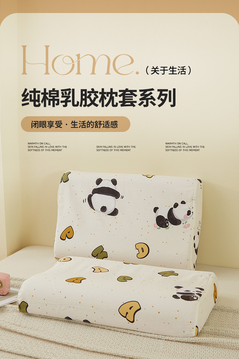 商品名称:翎盈家纺 2025新款纯棉小清新乳胶枕专用枕套 字母熊猫
