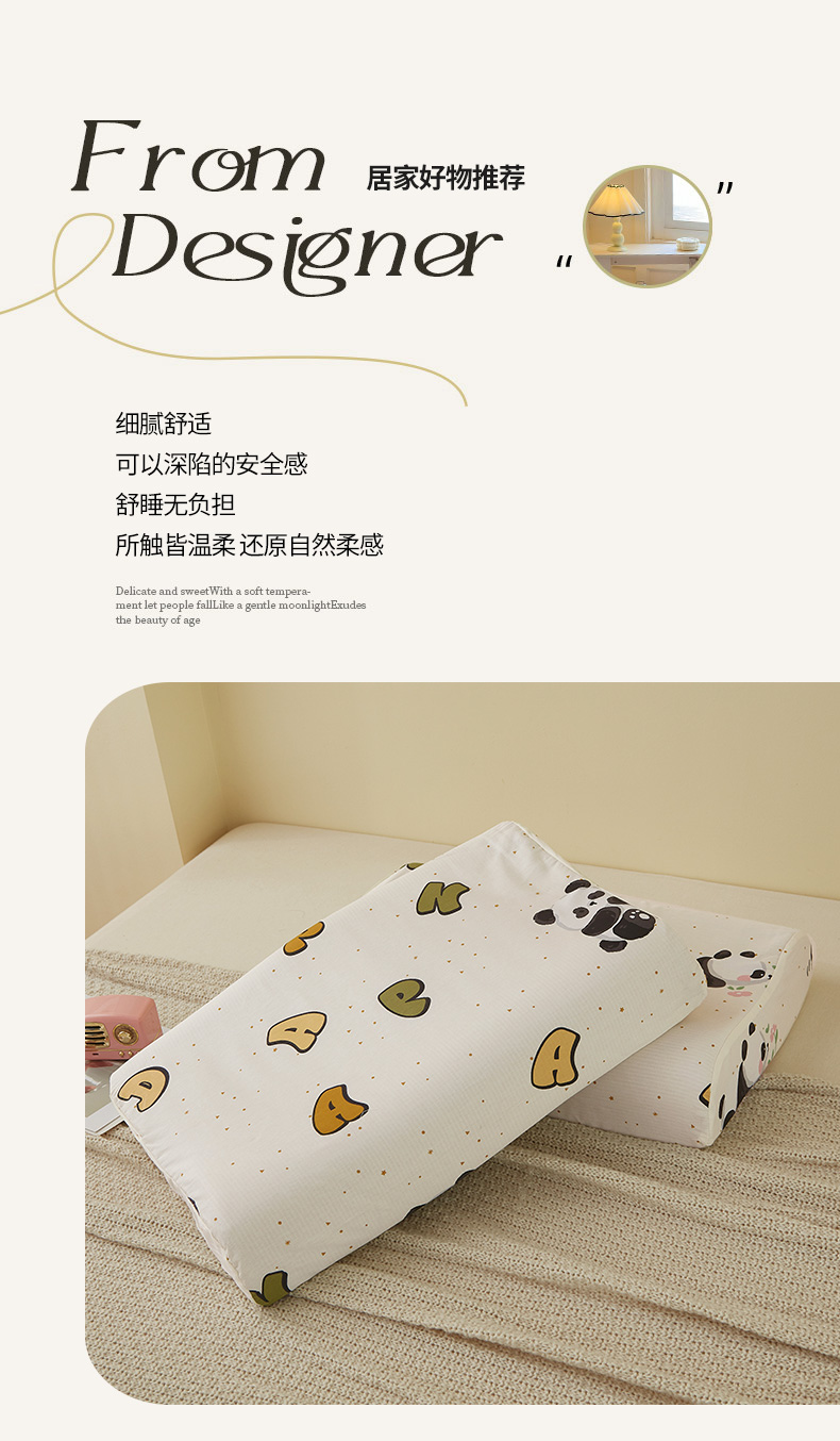 翎盈家纺 2025新款纯棉小清新乳胶枕专用枕套 字母熊猫