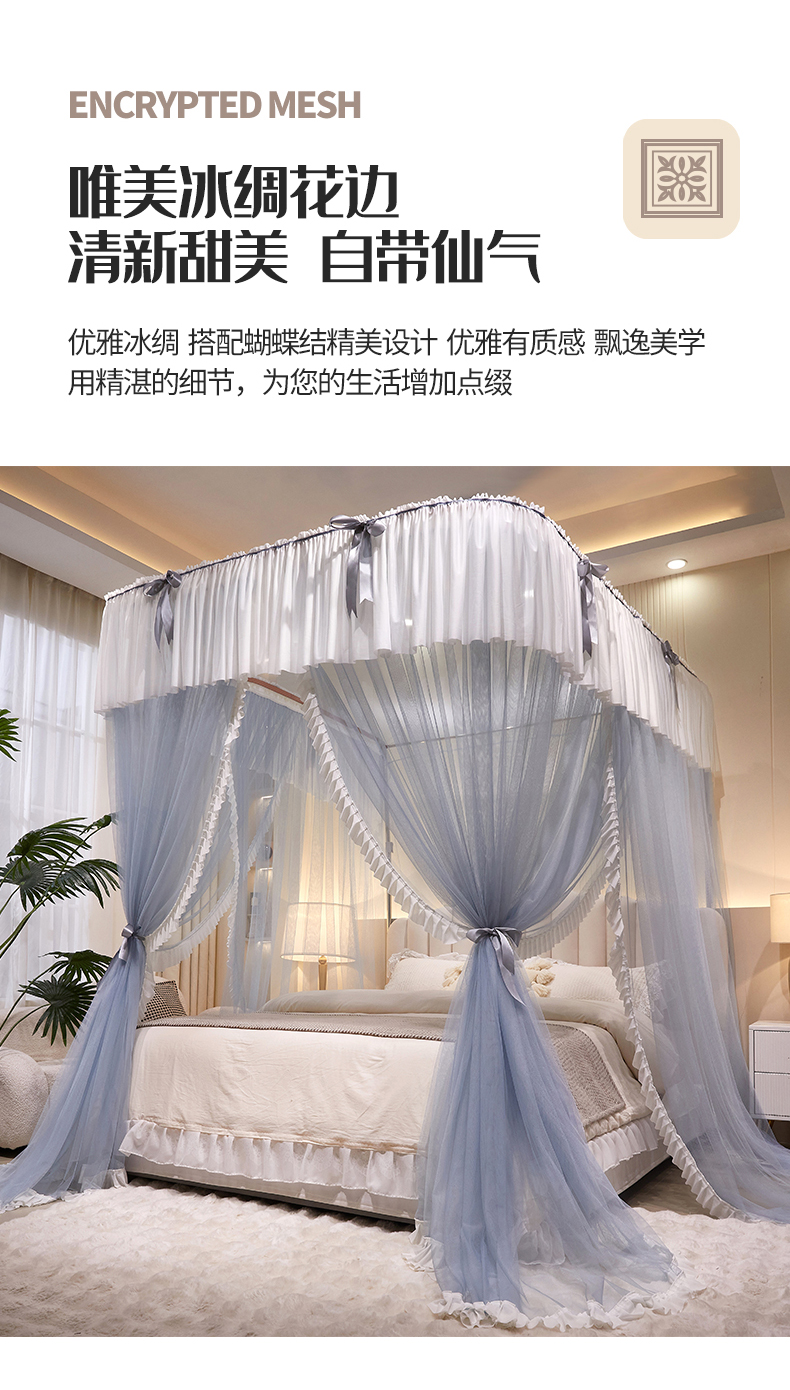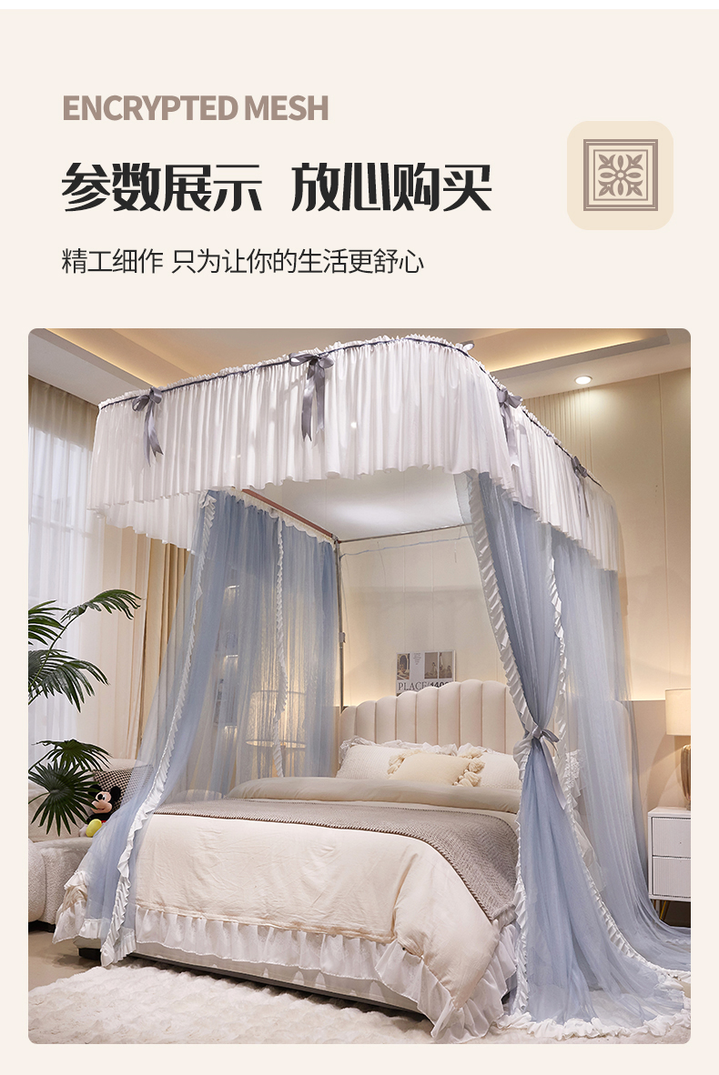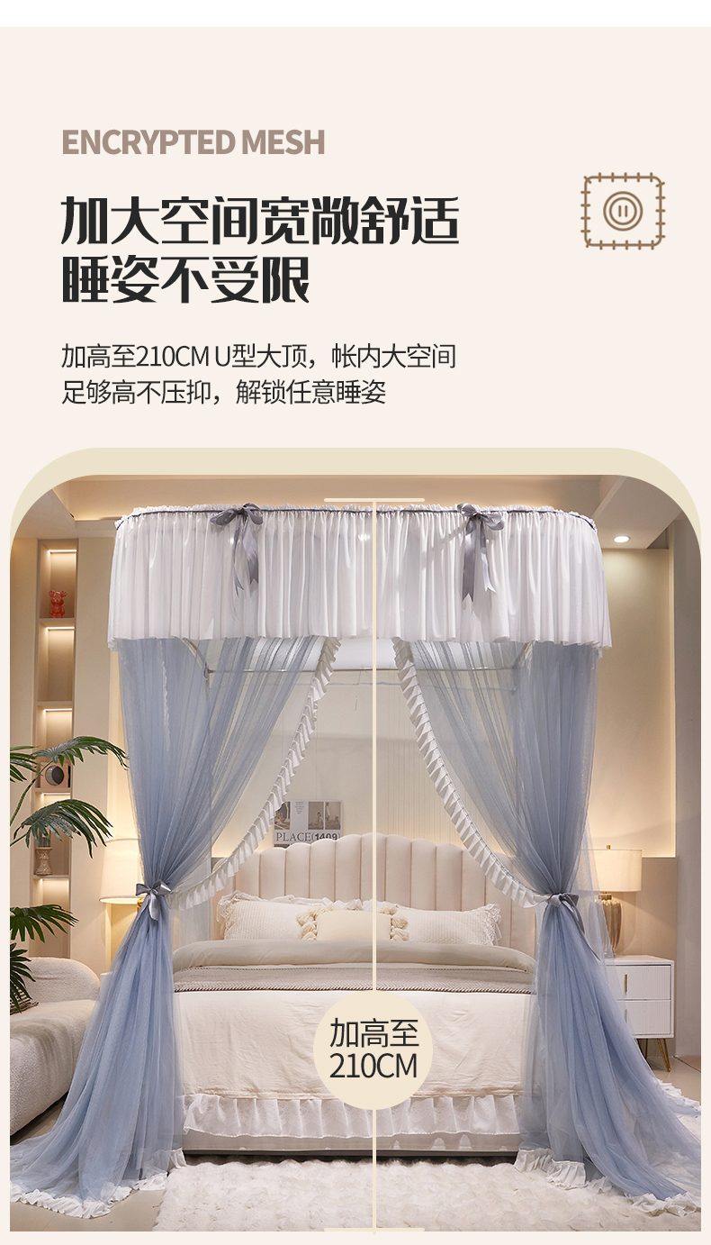 当前位置: 91家纺网 > 商品网购 > 床上用品 > 蚊帐 > 导轨蚊帐 > 夏彩 2025新款加柔加密铝合金接口高度可调节导轨蚊帐88615 88615蓝灰