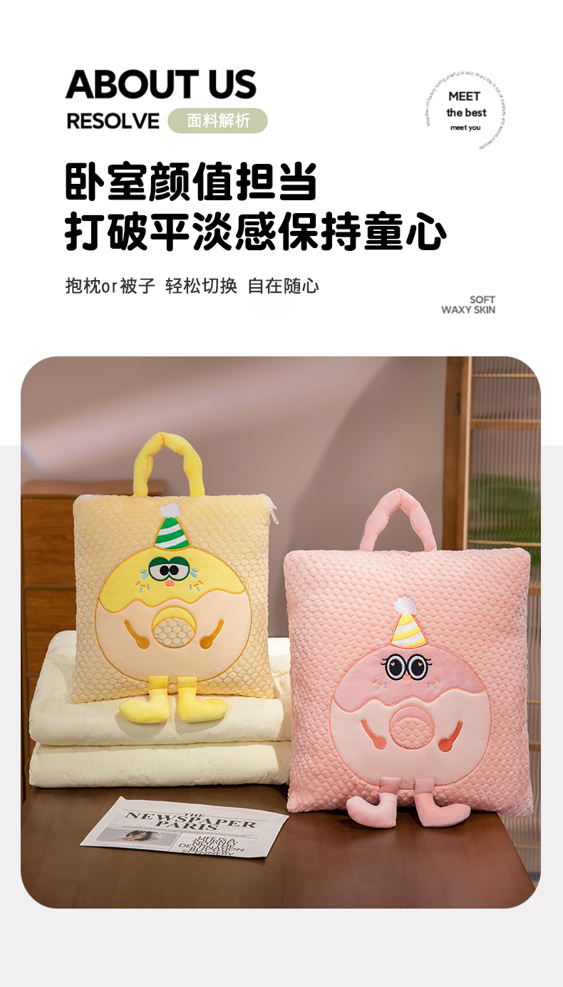 (总)中华鲟2025新款多功能豆豆绒提花网红抱枕毯卡通立体贴布刺绣抱枕被夏被,甜甜圈夏被-黄,甜甜圈夏被-蓝,甜甜圈夏被-粉,甜甜圈夏被-卡