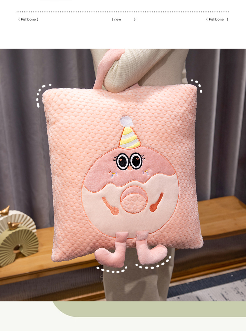 商品名称:中华鲟2025新款多功能豆豆绒提花网红抱枕毯卡通立体贴布刺绣抱枕被夏被 甜甜圈夏被-粉
