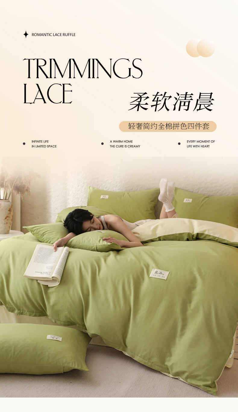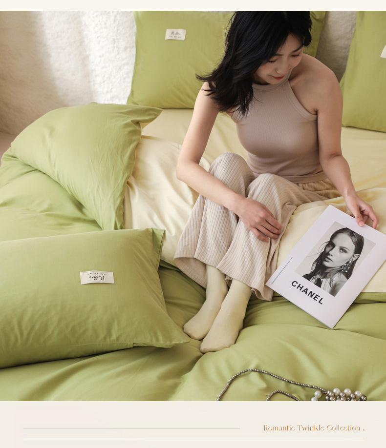 当前位置: 91家纺网 > 商品网购 > 床品套件 > 四件套 > 全棉普通四件套 > 眠博士 2025新款高支高密全棉双拼40支纯色四件套场景二 全棉拼色-浅绿+浅黄